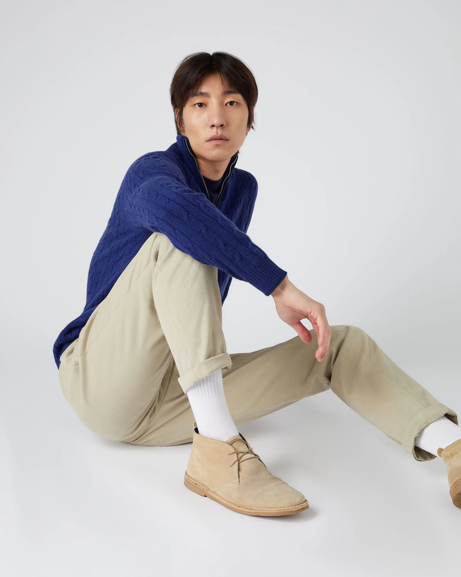 Here is a cable half zip cashmere sweater, beautiful and luxurious.