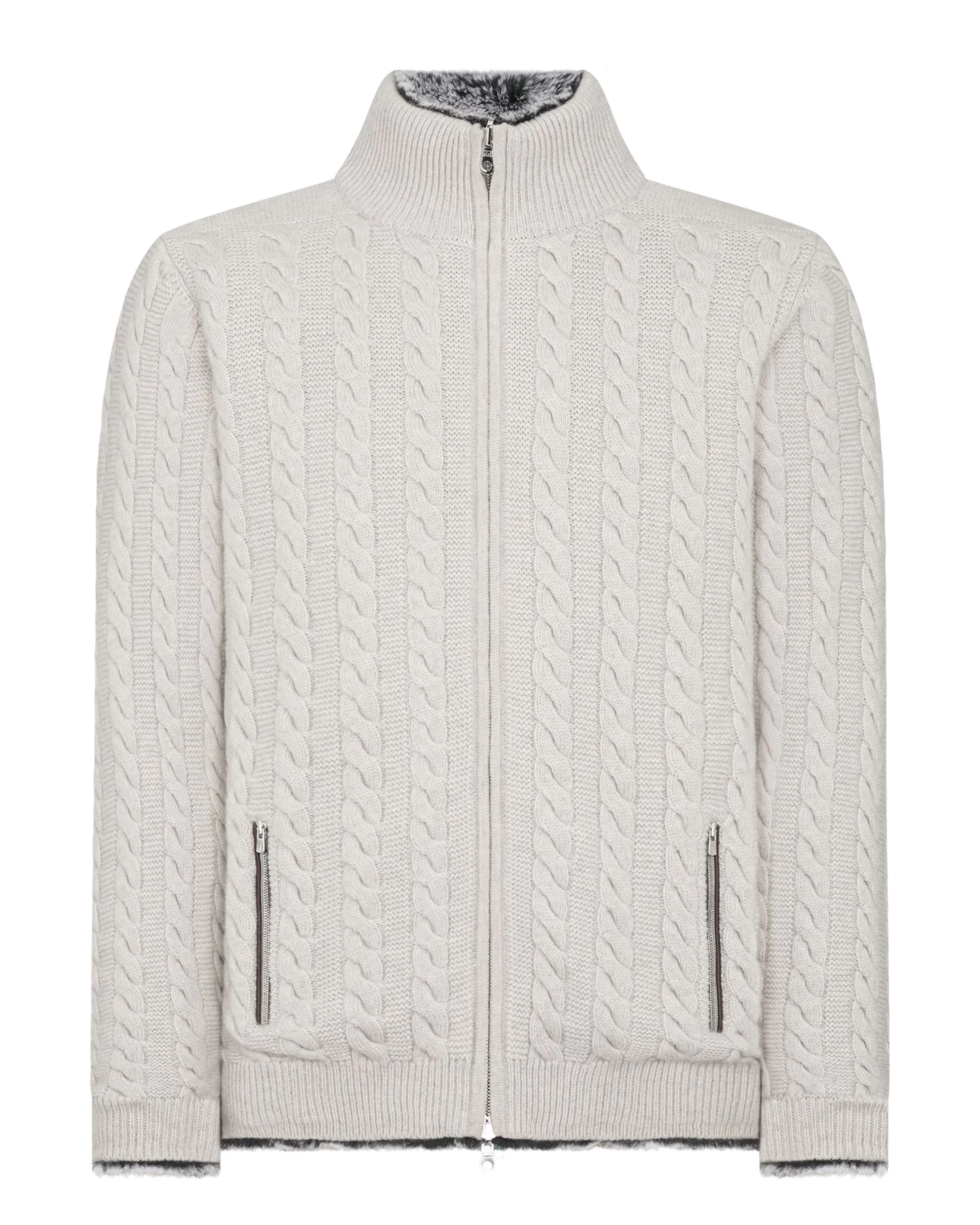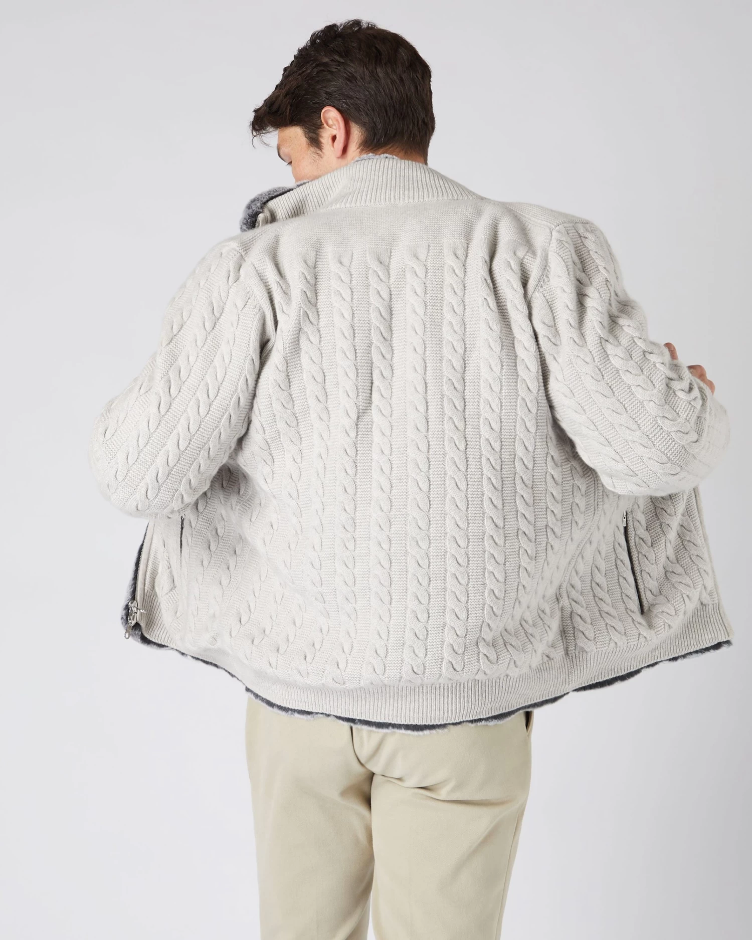The opulence of a fur lined Cashmere cable cardigan, a truly unique N.Peal piece.