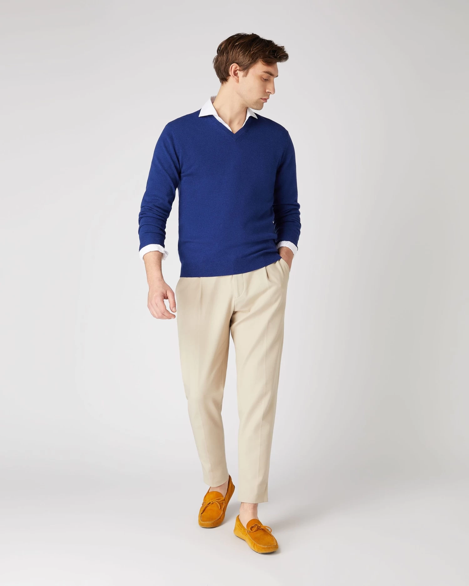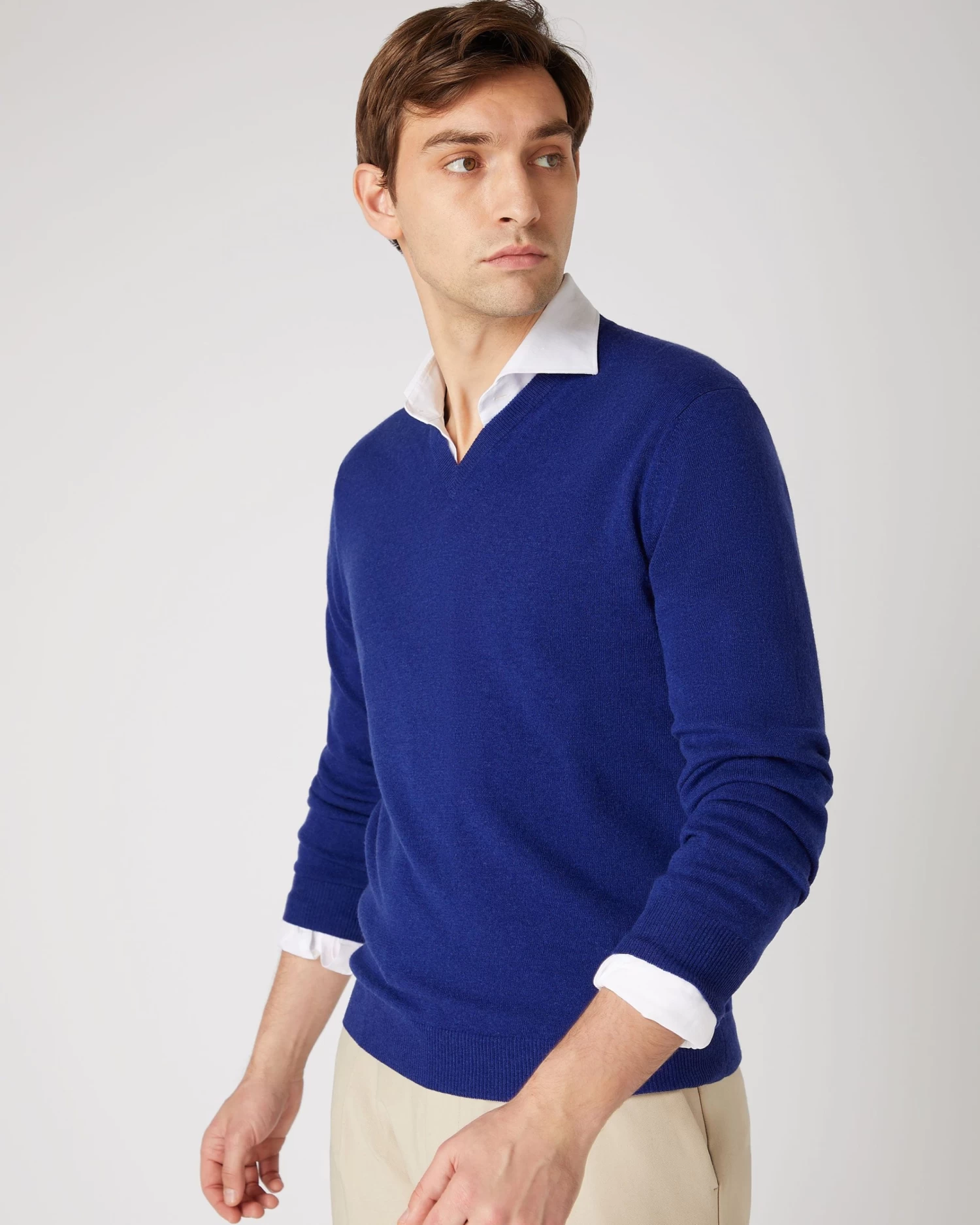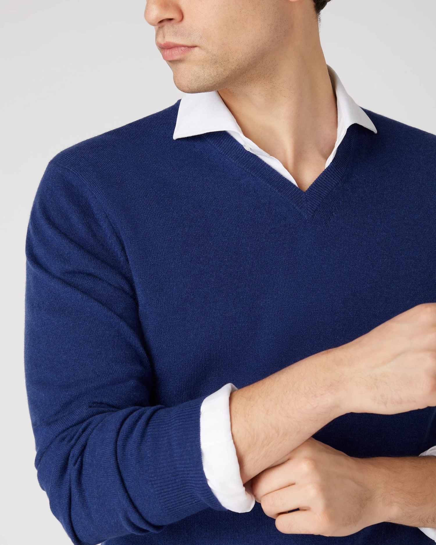 Here we see the 1ply cashmere Burlington V neck sweater.
