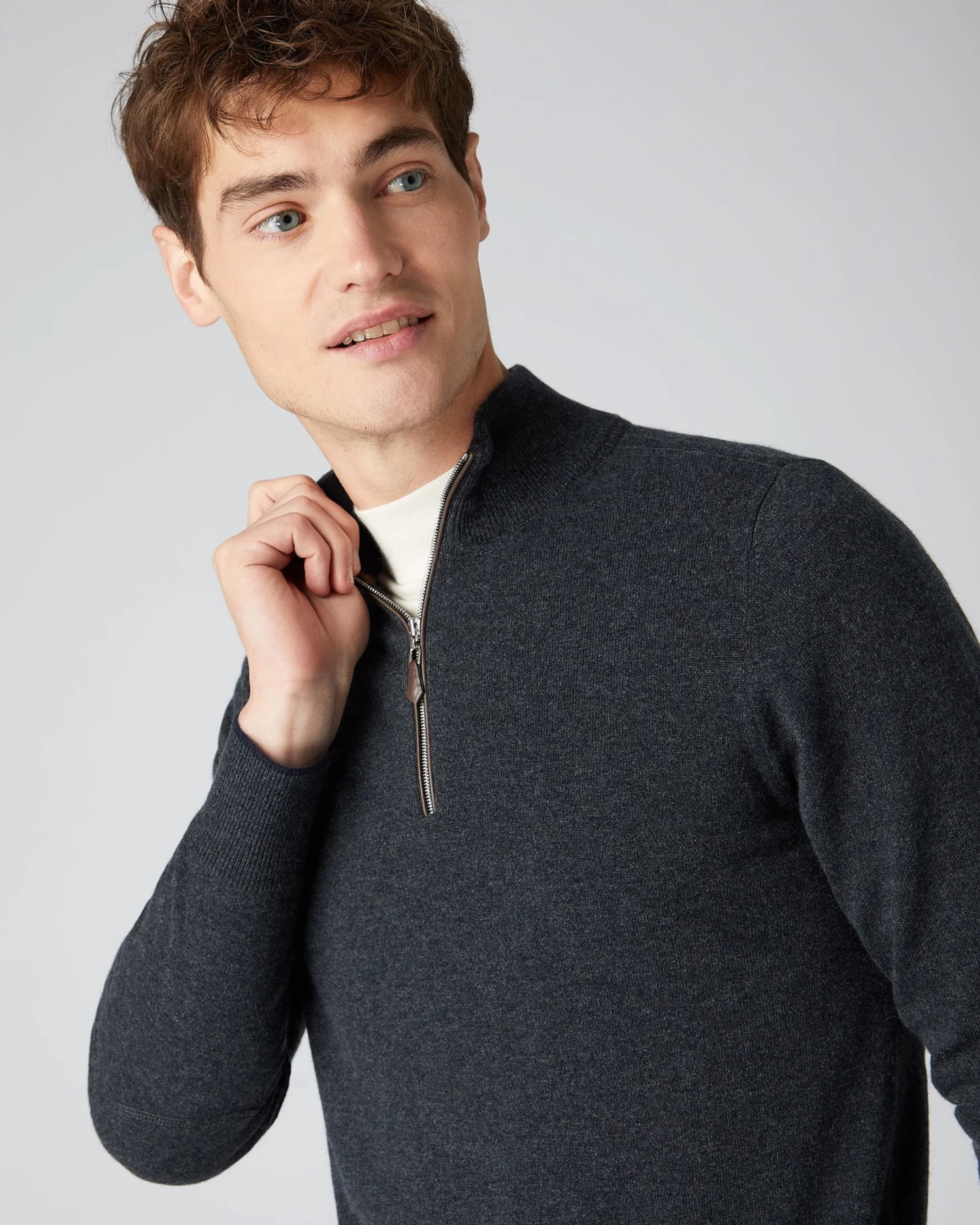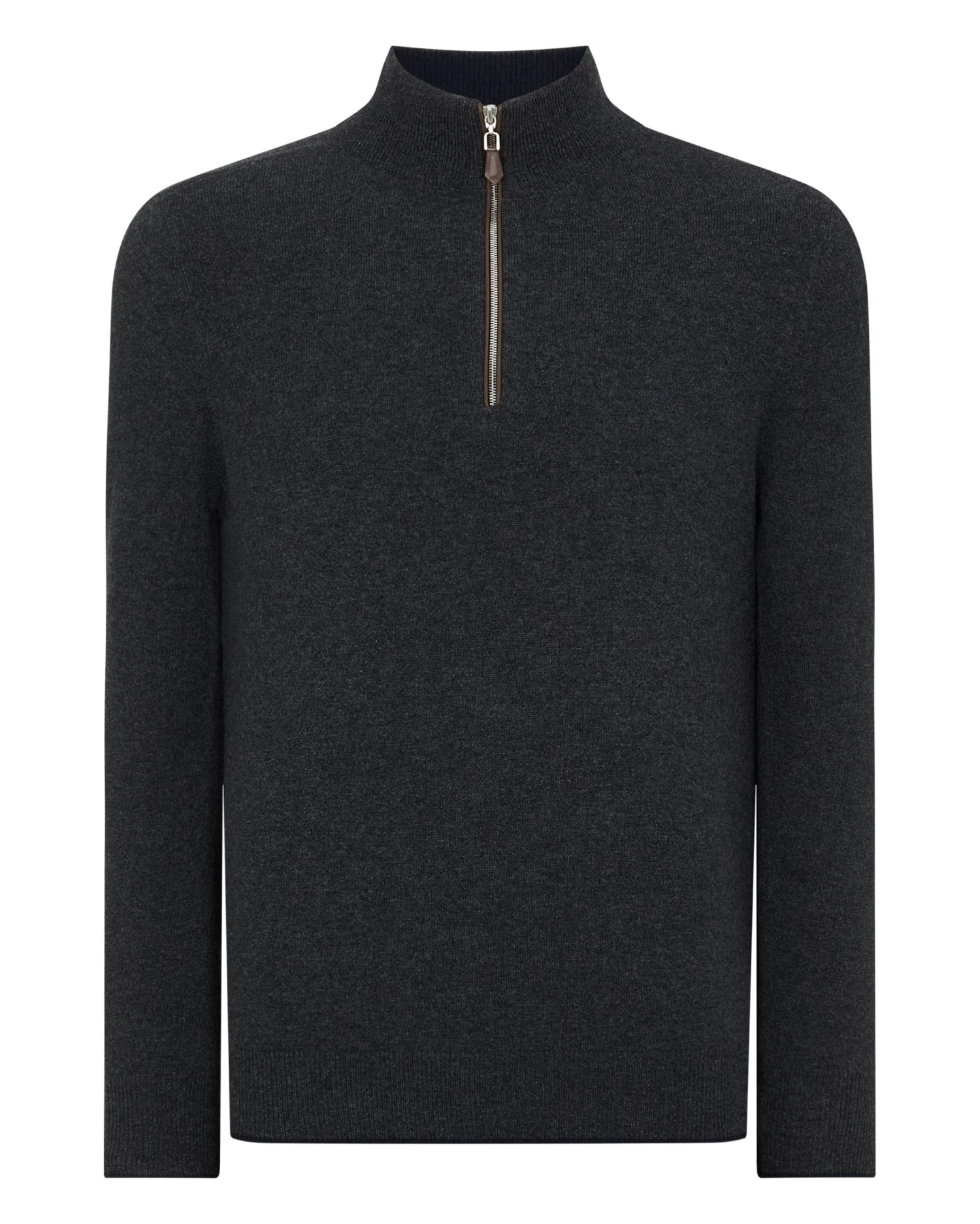 The Carnaby is shown here – a half zip cashmere sweater, beautiful in design and cut.