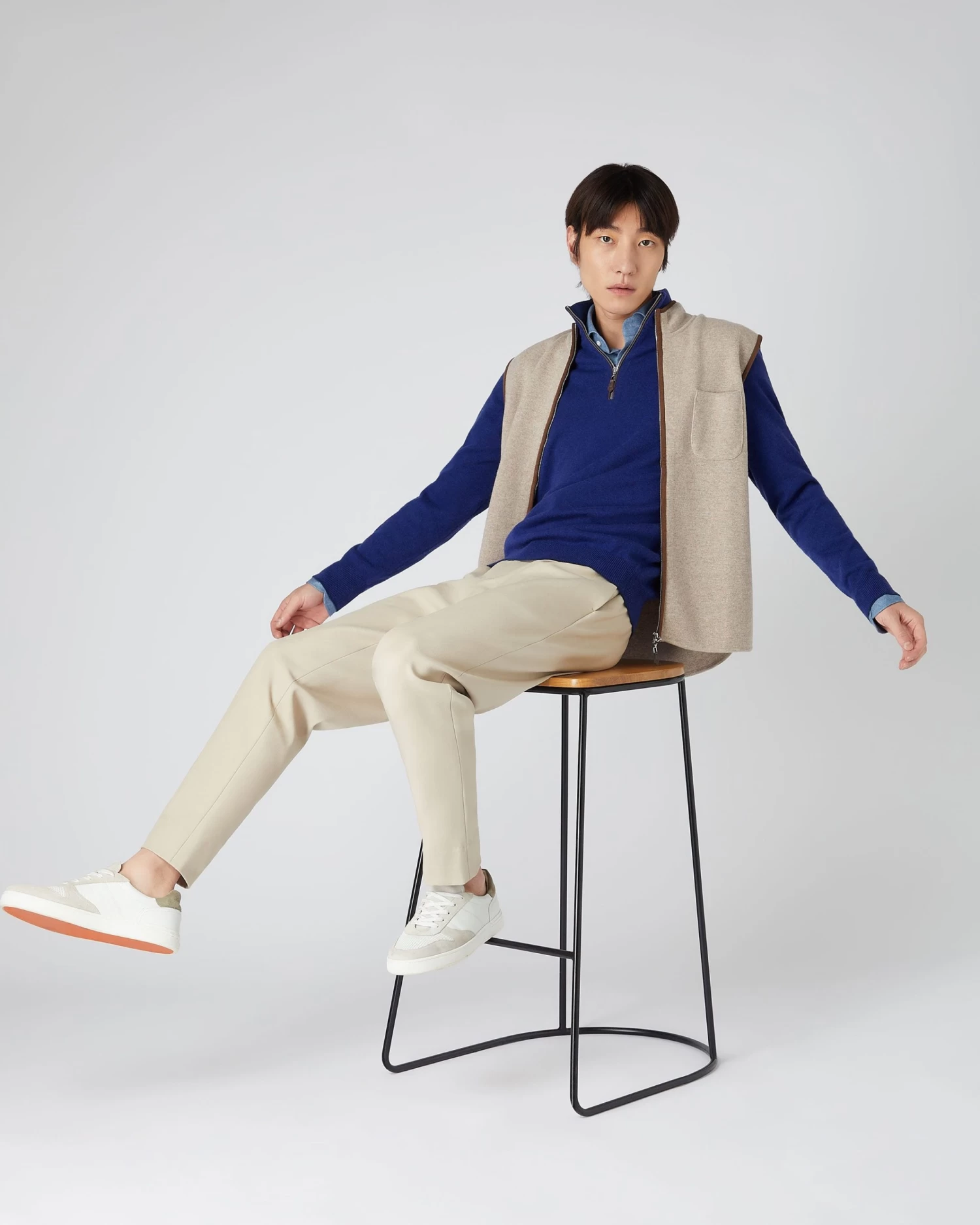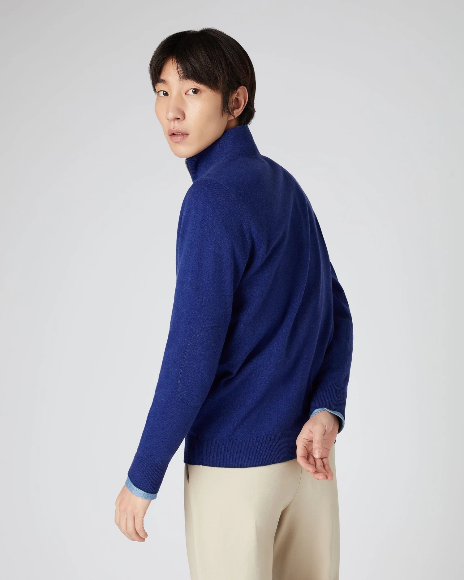 The Carnaby is shown here – a half zip cashmere sweater, beautiful in design and cut.
