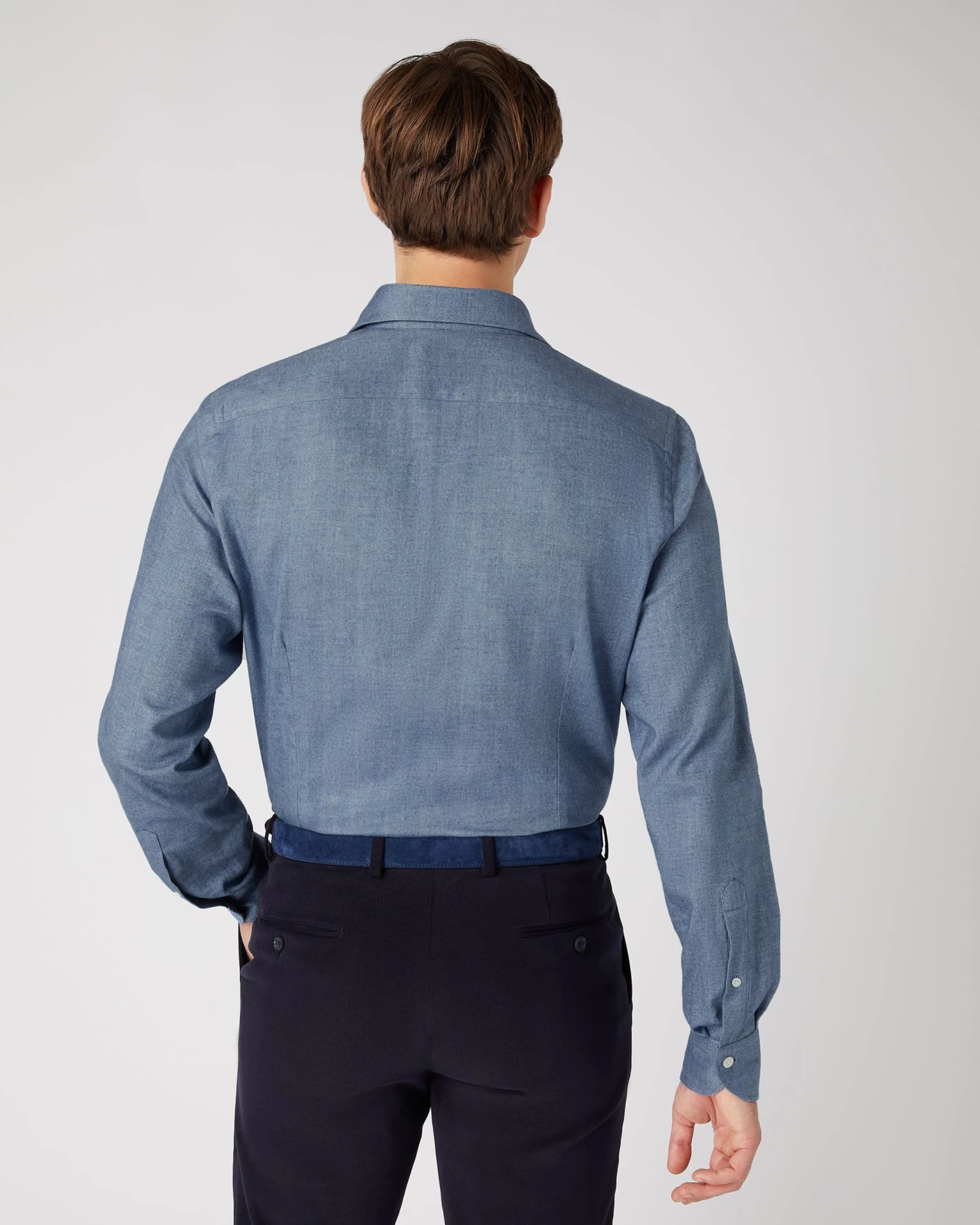 Introducing our ‘cashmere touch’ flannel shirts, where elegance and comfort combine. The extremely subtle herringbone weave and sartorial cutaway collar make for this to be the perfect wardrobe staple, worn alone or underneath our v neck or half zip styles.