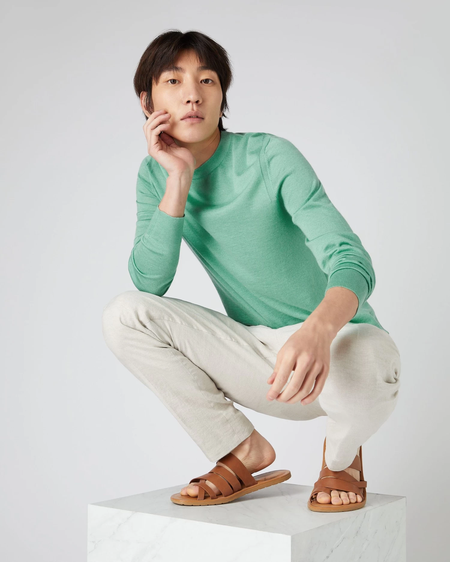 Men’s Covent Fine Gauge Cashmere Round Neck Jumper Seafoam Green