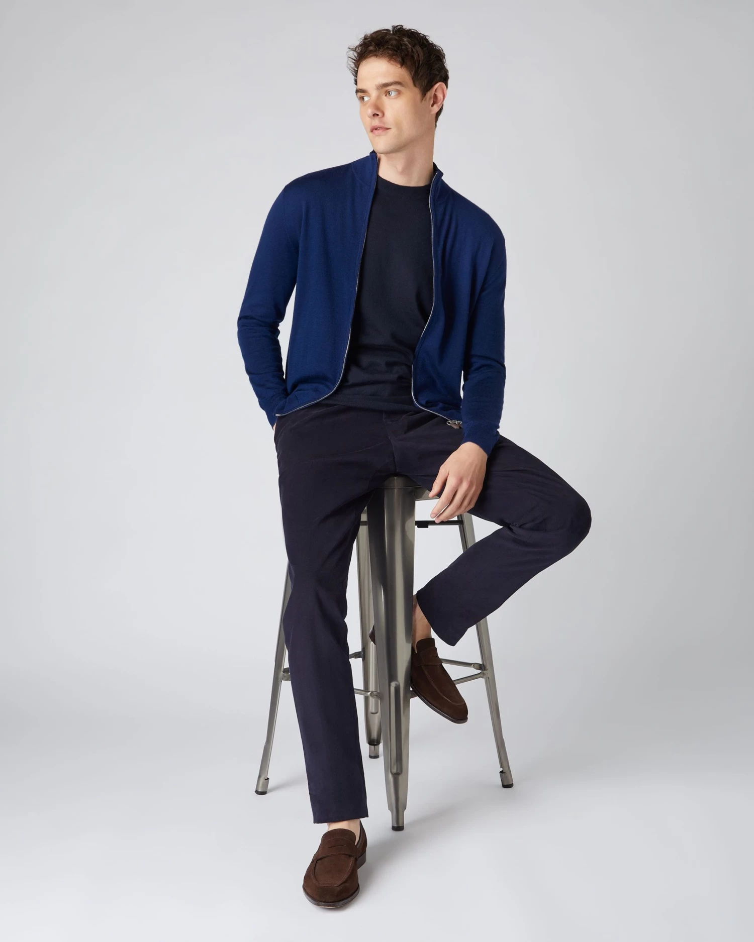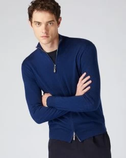 Men’s Hyde Fine Gauge Cashmere Full Zip Jumper French Blue