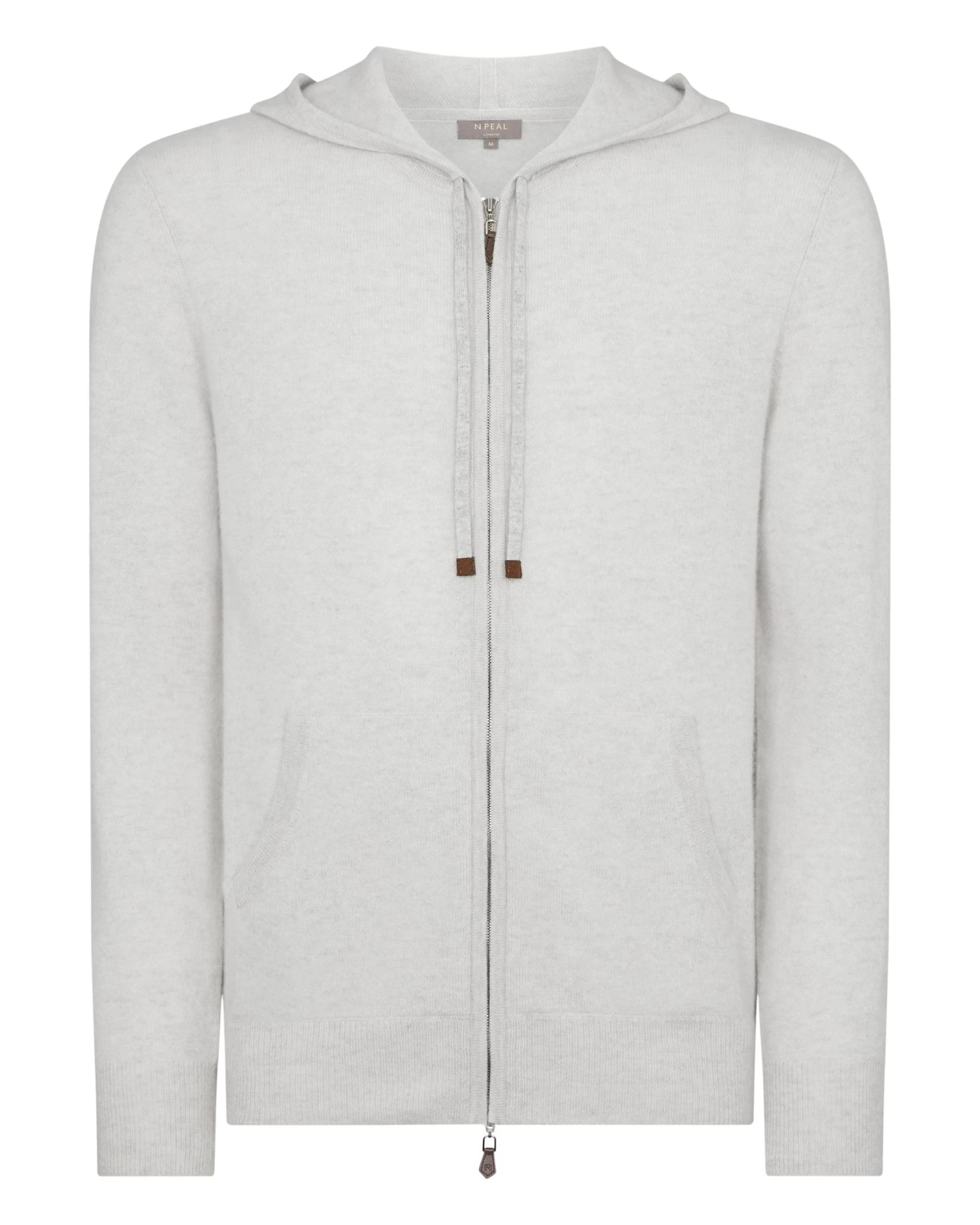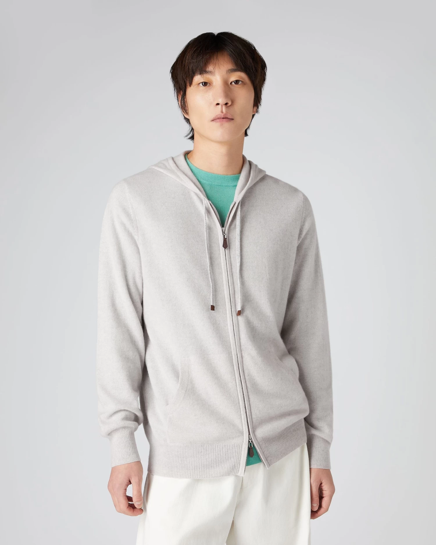 Leisure and luxury is combined here in a cashmere hooded zipped top.