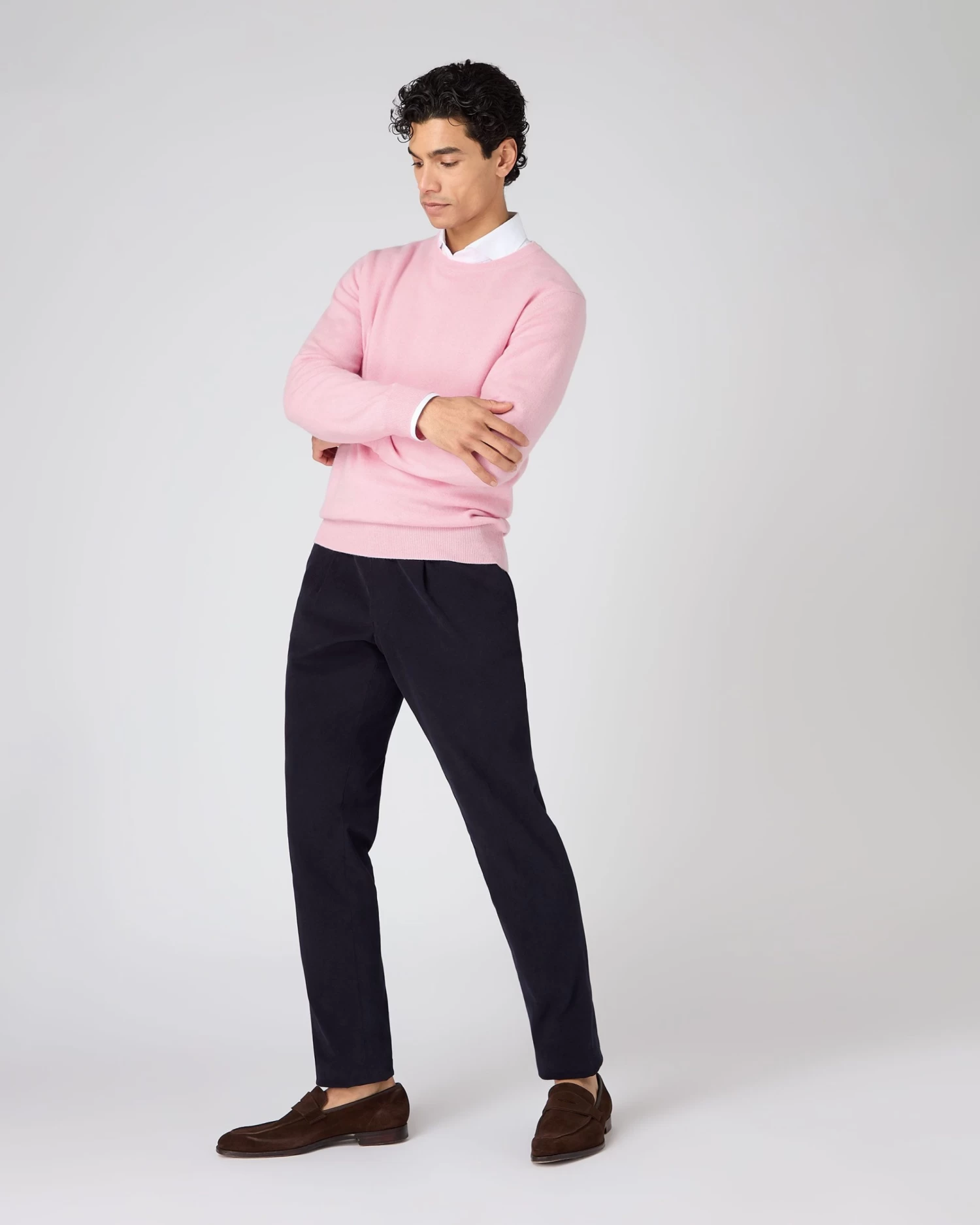 Men’s Oxford Round Neck Cashmere Jumper Flamingo Pink