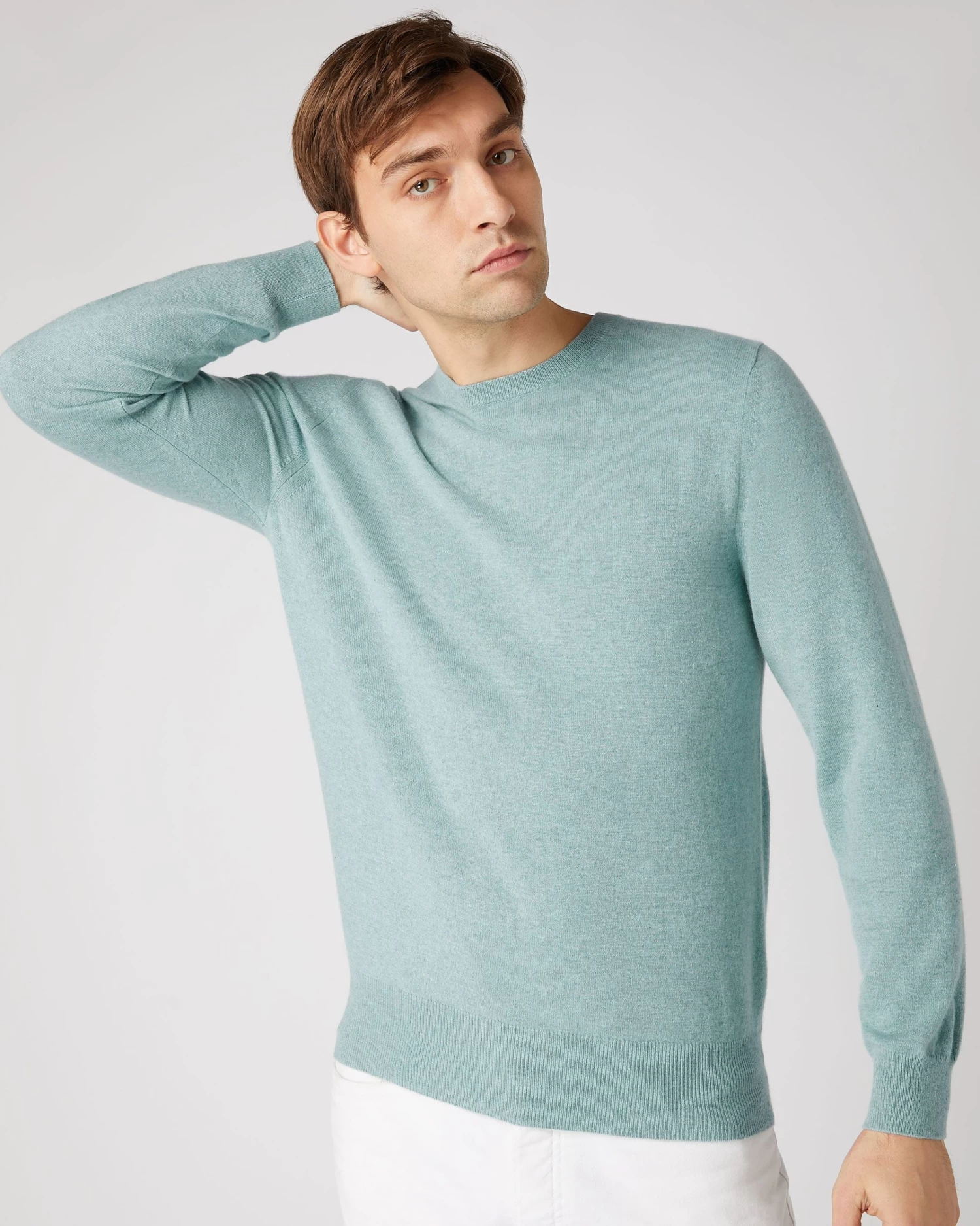 N.Peal’s best selling Oxford round neck cashmere sweater in 1ply, true luxury in cashmere.