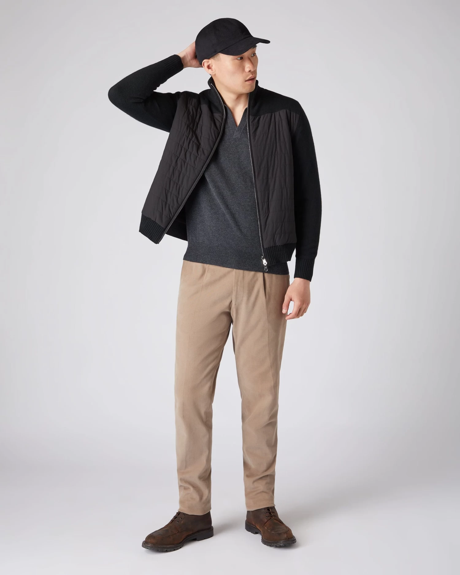 – Made from 100% knitted cashmere with a showerproof fabric on the outer shell
