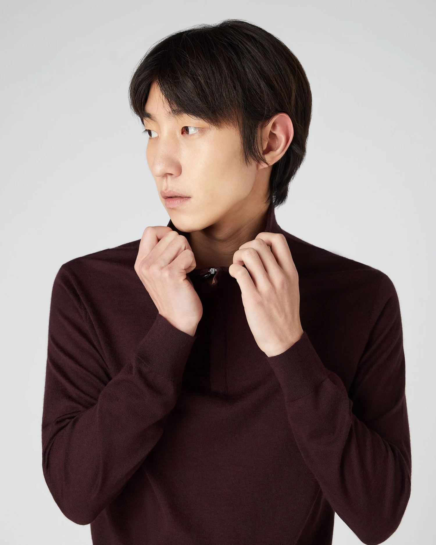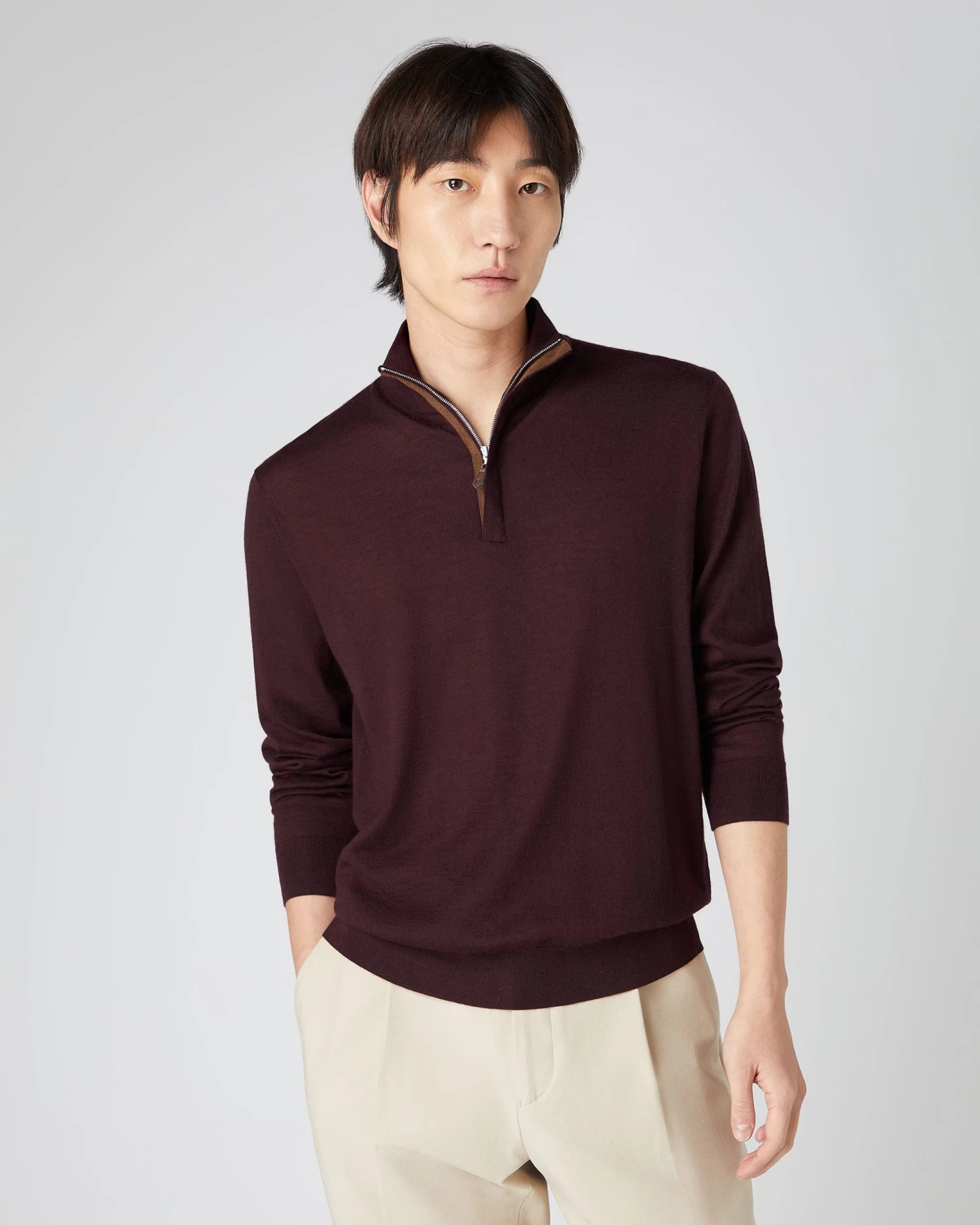 The Regent, our half zip fine gauge Summer weight sweater.