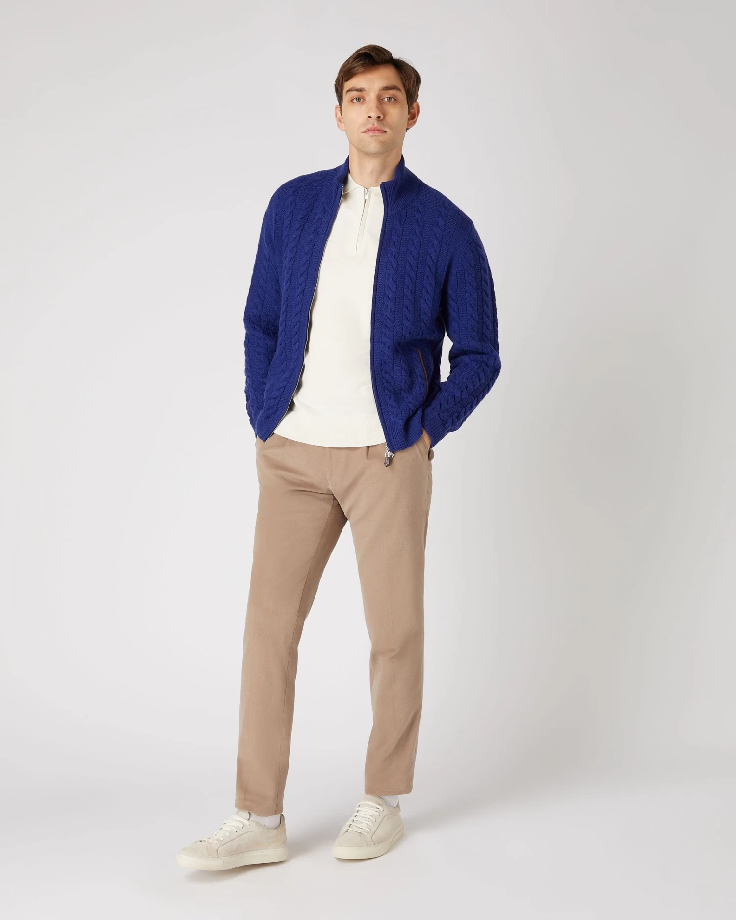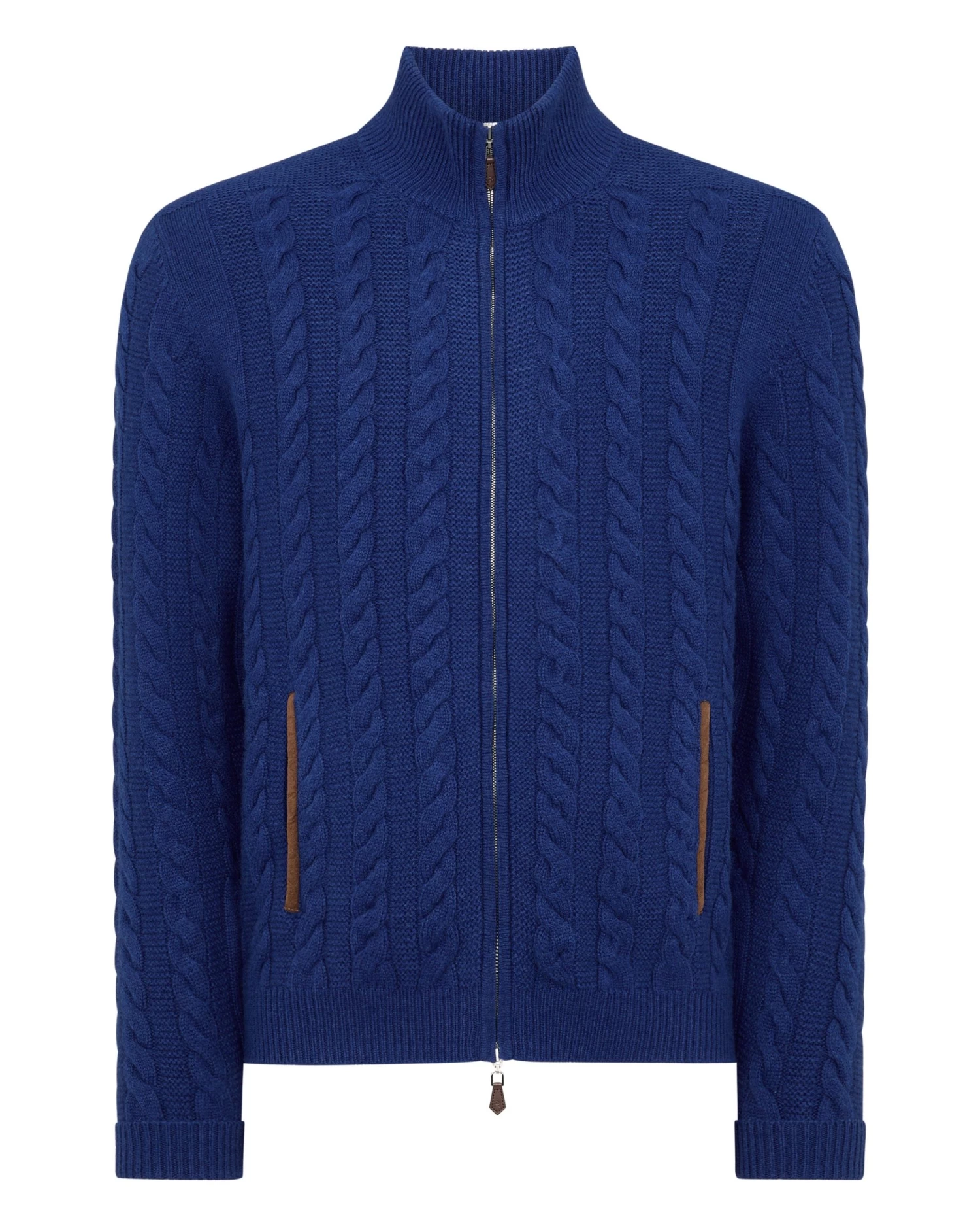 Men’s Richmond Cable Cashmere Cardigan Sapphire Blue