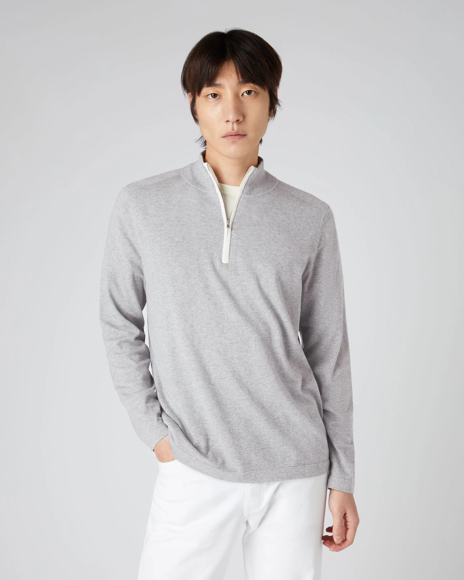 Men’s Salcombe Half Zip Cotton Cashmere Jumper Fumo Grey