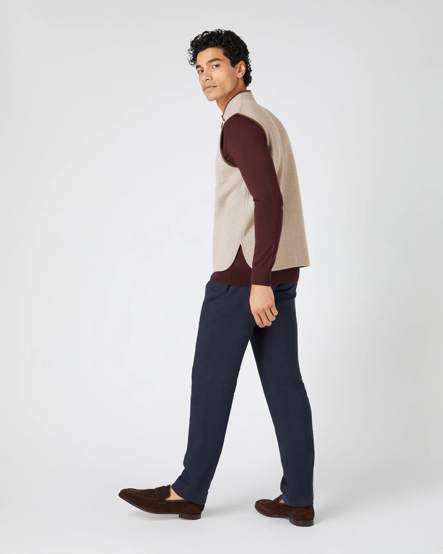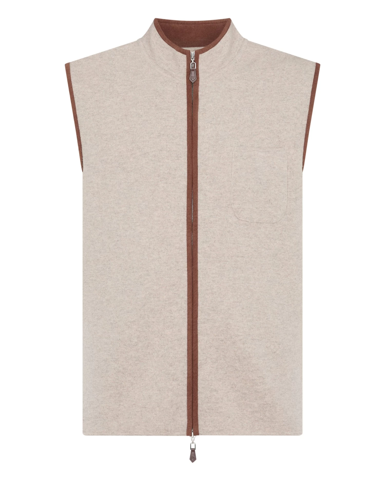 Men’s Shaftsbury Suede Trim Cashmere Gilet Oatmeal Brown