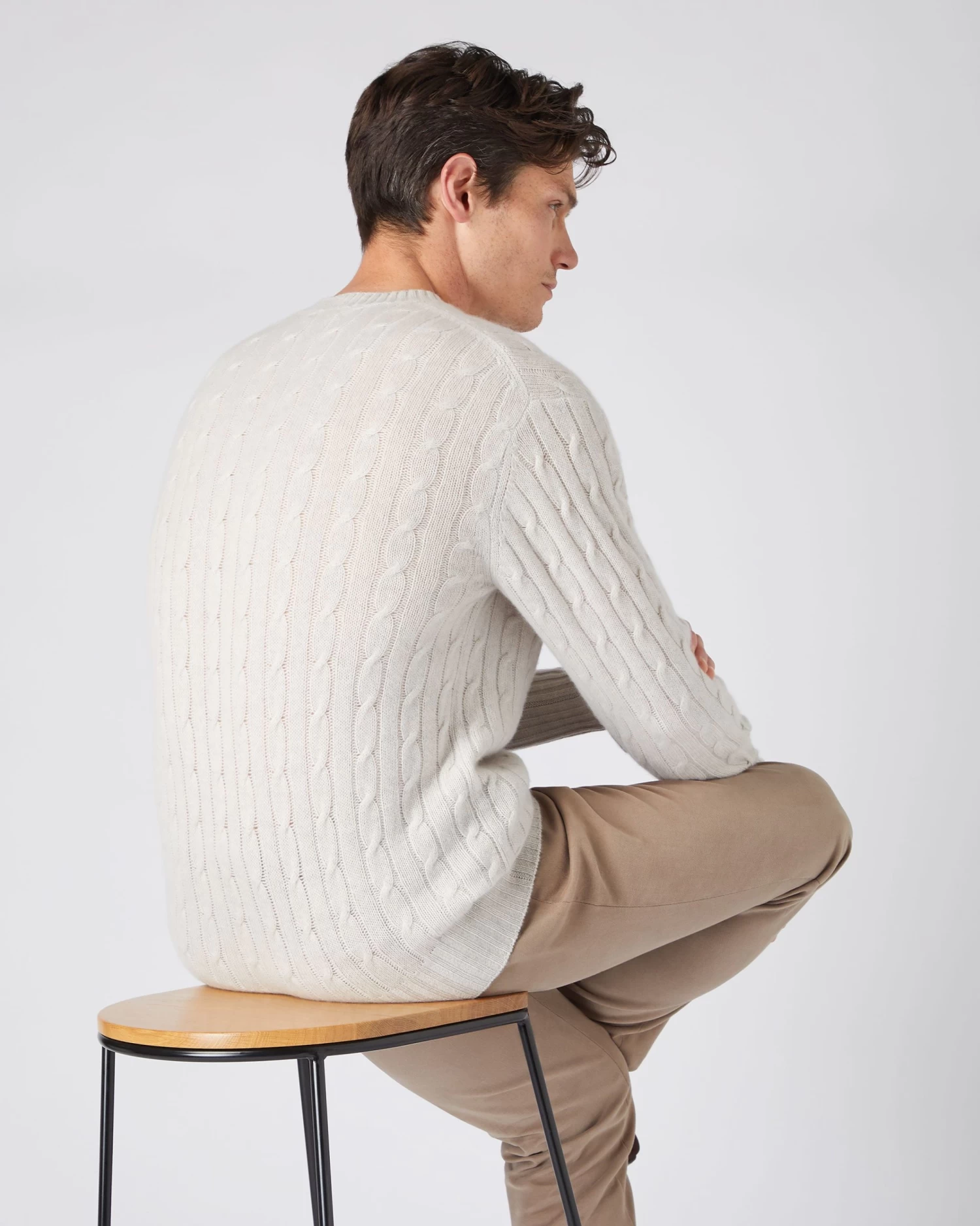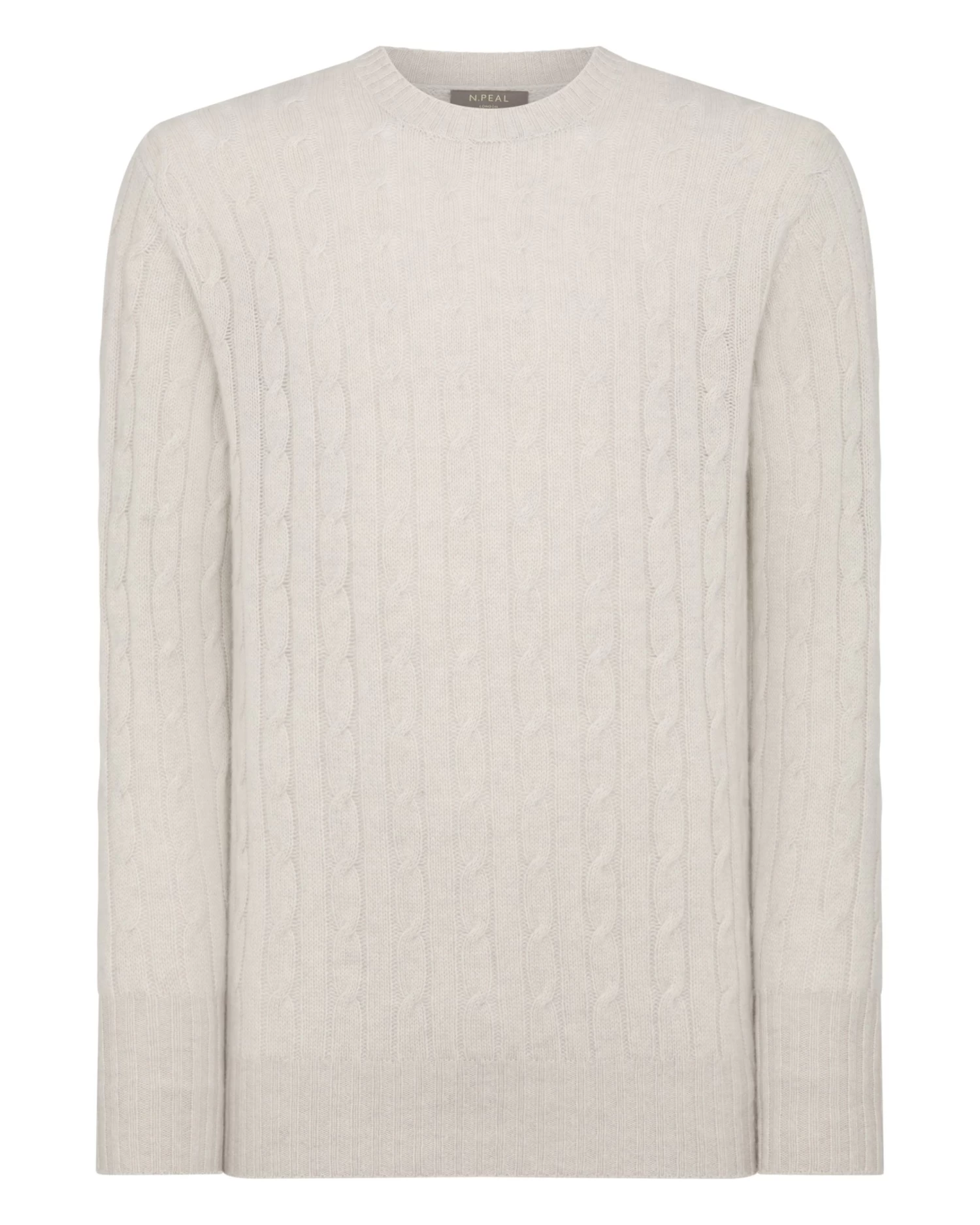 Men’s Thames Cable Round Neck Cashmere Jumper Pebble Grey