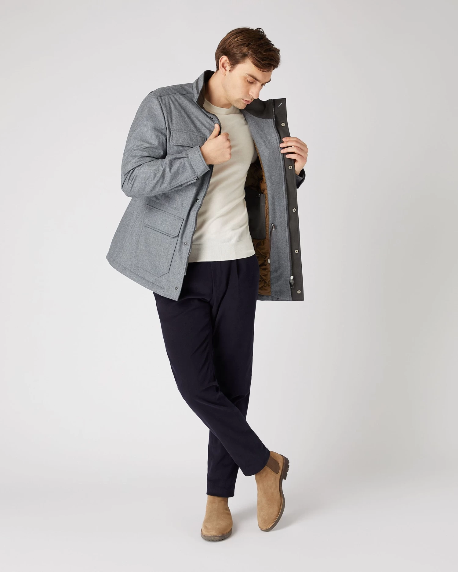 – A waterproof worsted wool jacket, crafted from 97% Wool and 3%Â Polyurethane