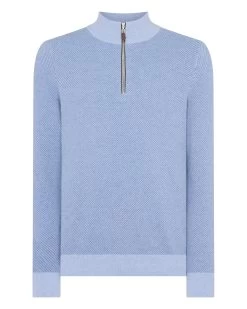 Men’s Diagonal Stripe Half Zip Cashmere Jumper Cornflower Blue