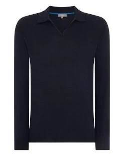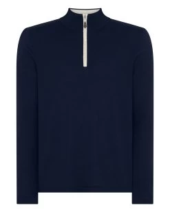 Men’s Regent Birdseye Fine Gauge Cashmere Half Zip Jumper Navy Blue