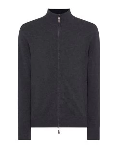 Men’s Knightsbridge Full Zip Cashmere Jumper Dark Charcoal Grey