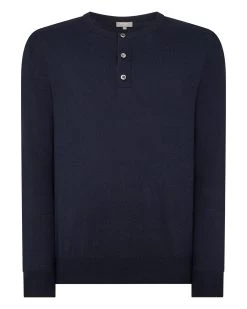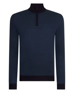 Men’s Regent Birdseye Fine Gauge Cashmere Half Zip Jumper Navy Blue