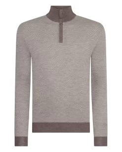 Men’s Regent Birdseye Fine Gauge Cashmere Half Zip Jumper Taupe Brown