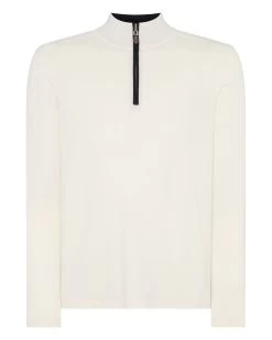 Men’s Salcombe Half Zip Cotton Cashmere Jumper New Ivory White