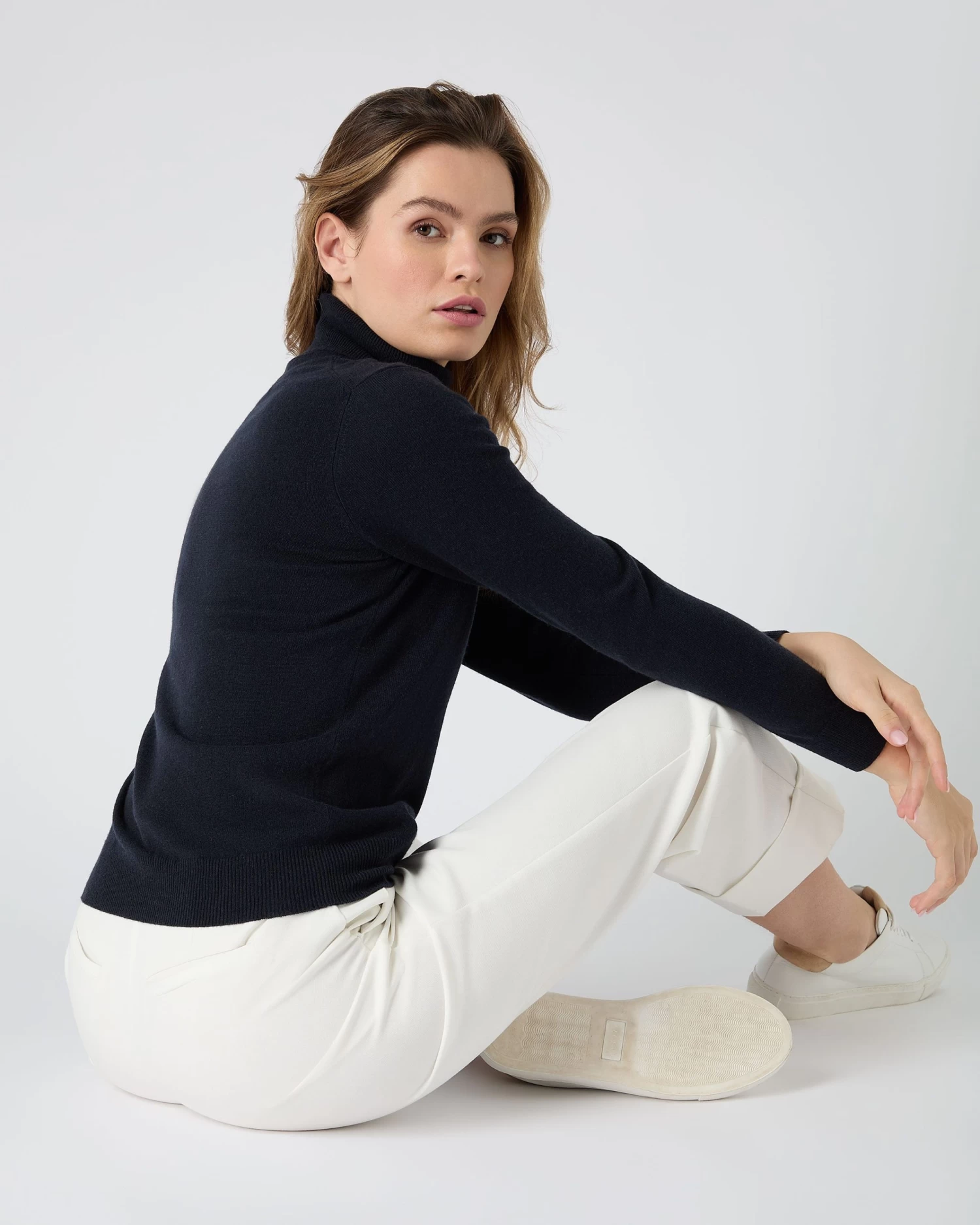 A ladies N.Peal roll neck style is always popular – here upgraded further with The Jockey Club collaboration.