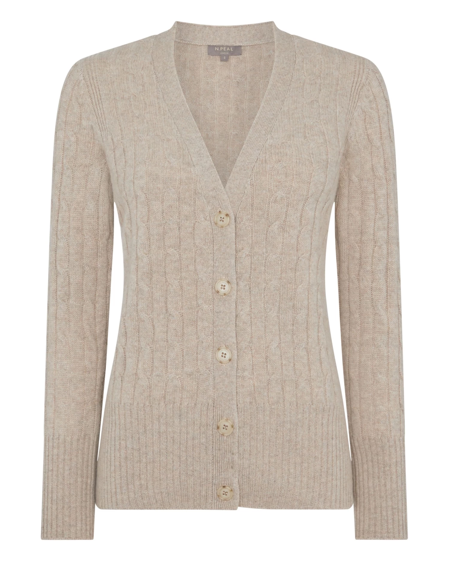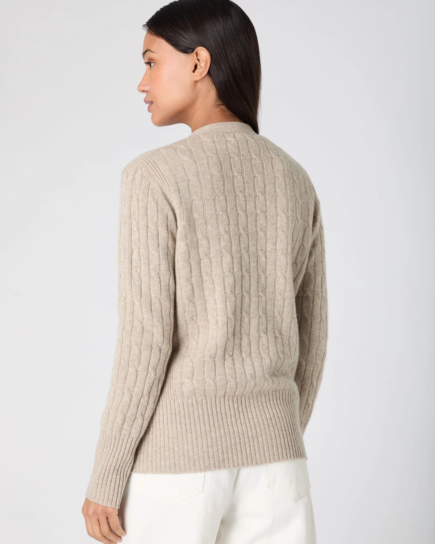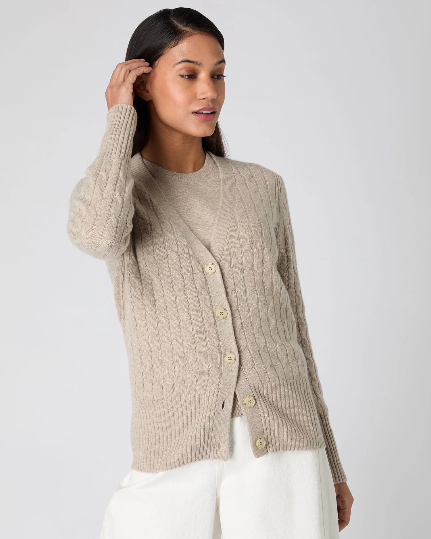 Women’s Clara Cable V Neck Cashmere Cardigan Oatmeal Brown