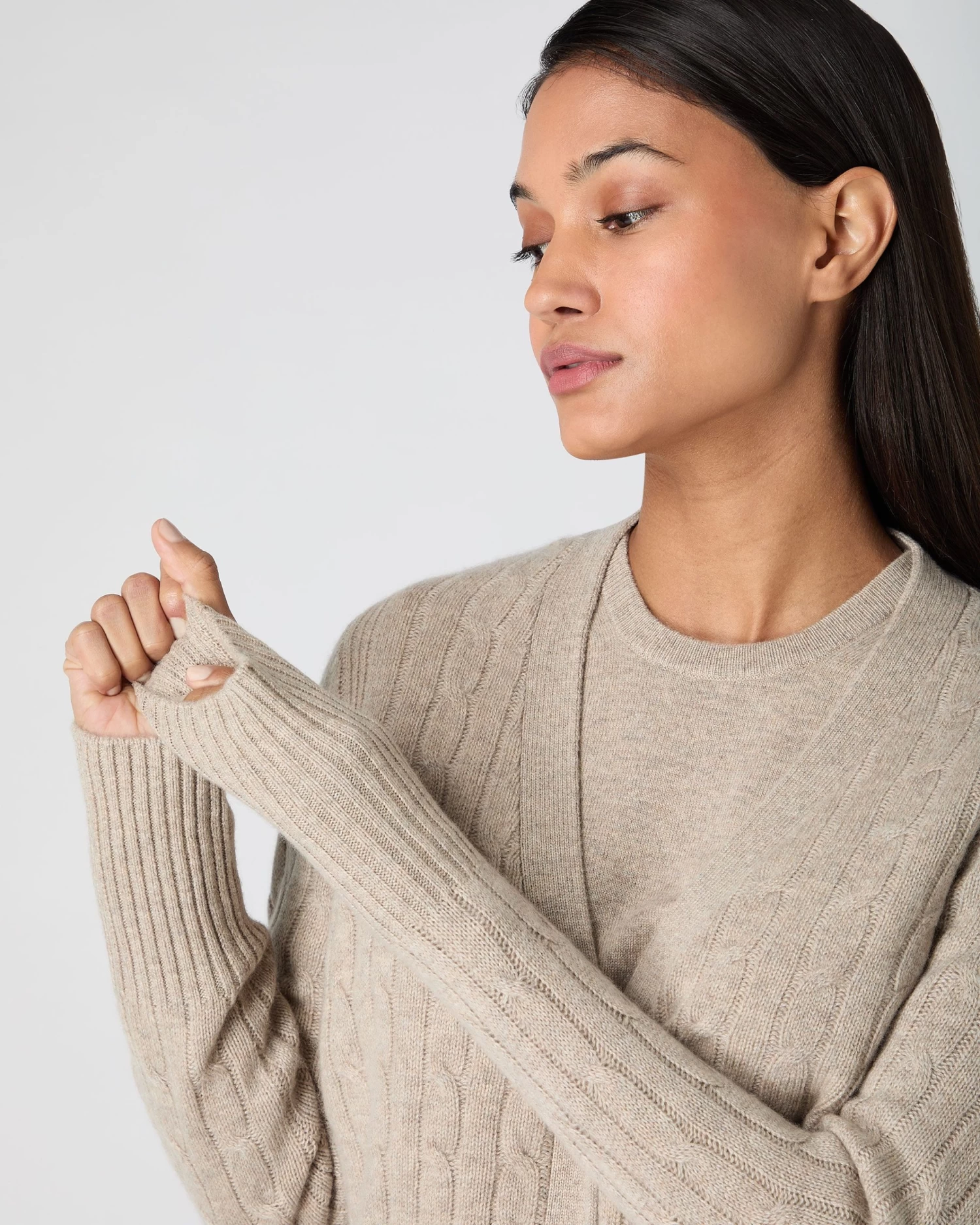 Be the first to review “Women’s Clara Cable V Neck Cashmere Cardigan Oatmeal Brown” Cancel reply