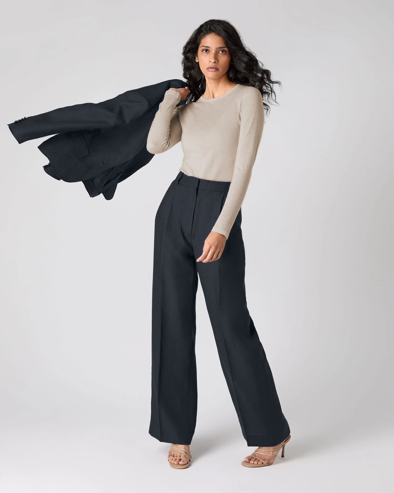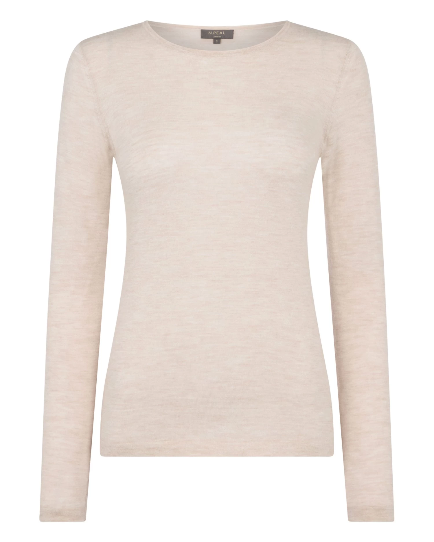Our superfine is very popular, here we see the long sleeve, round neck cashmere top.