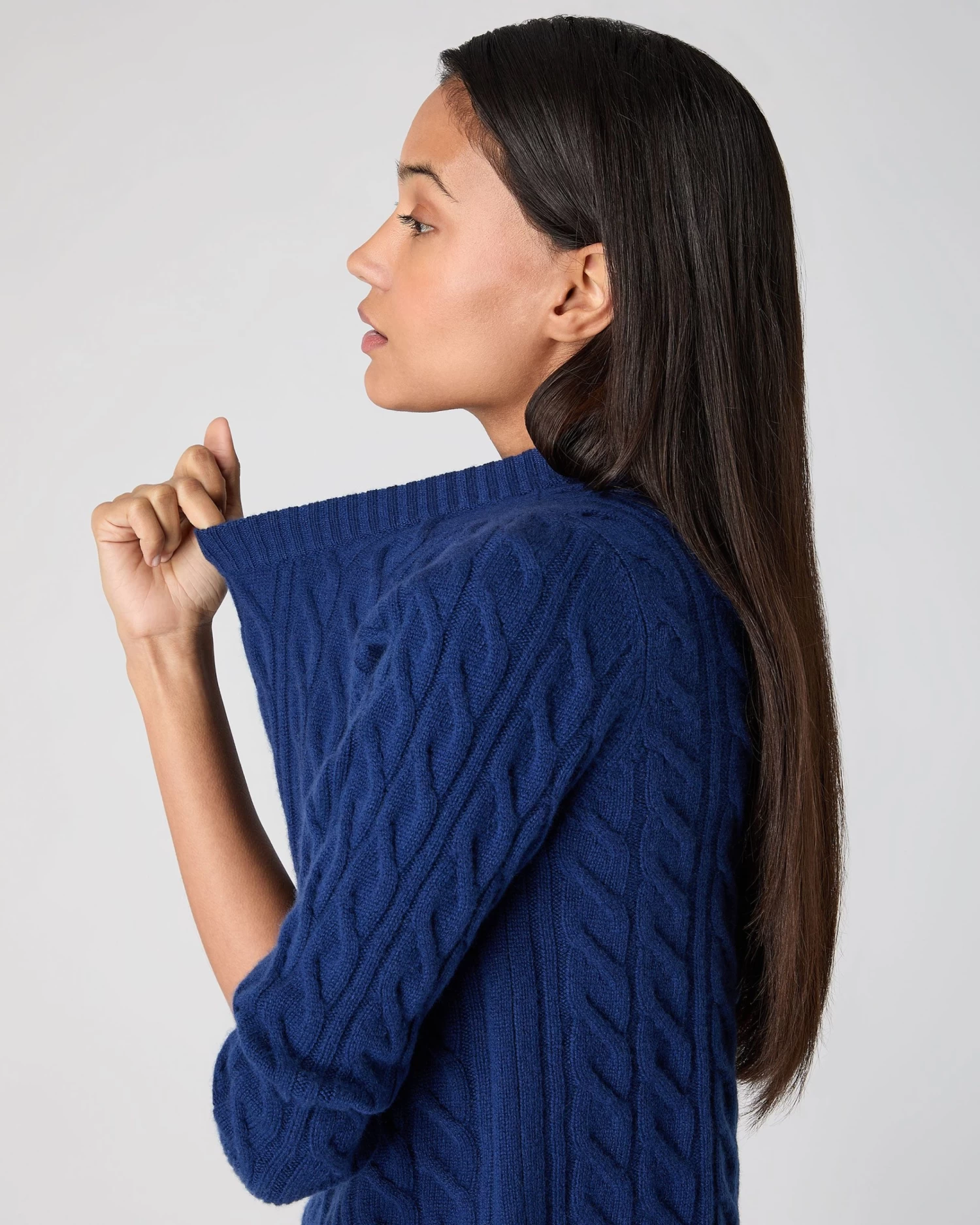 Take a look at this beautiful round neck sweater in cable cashmere.