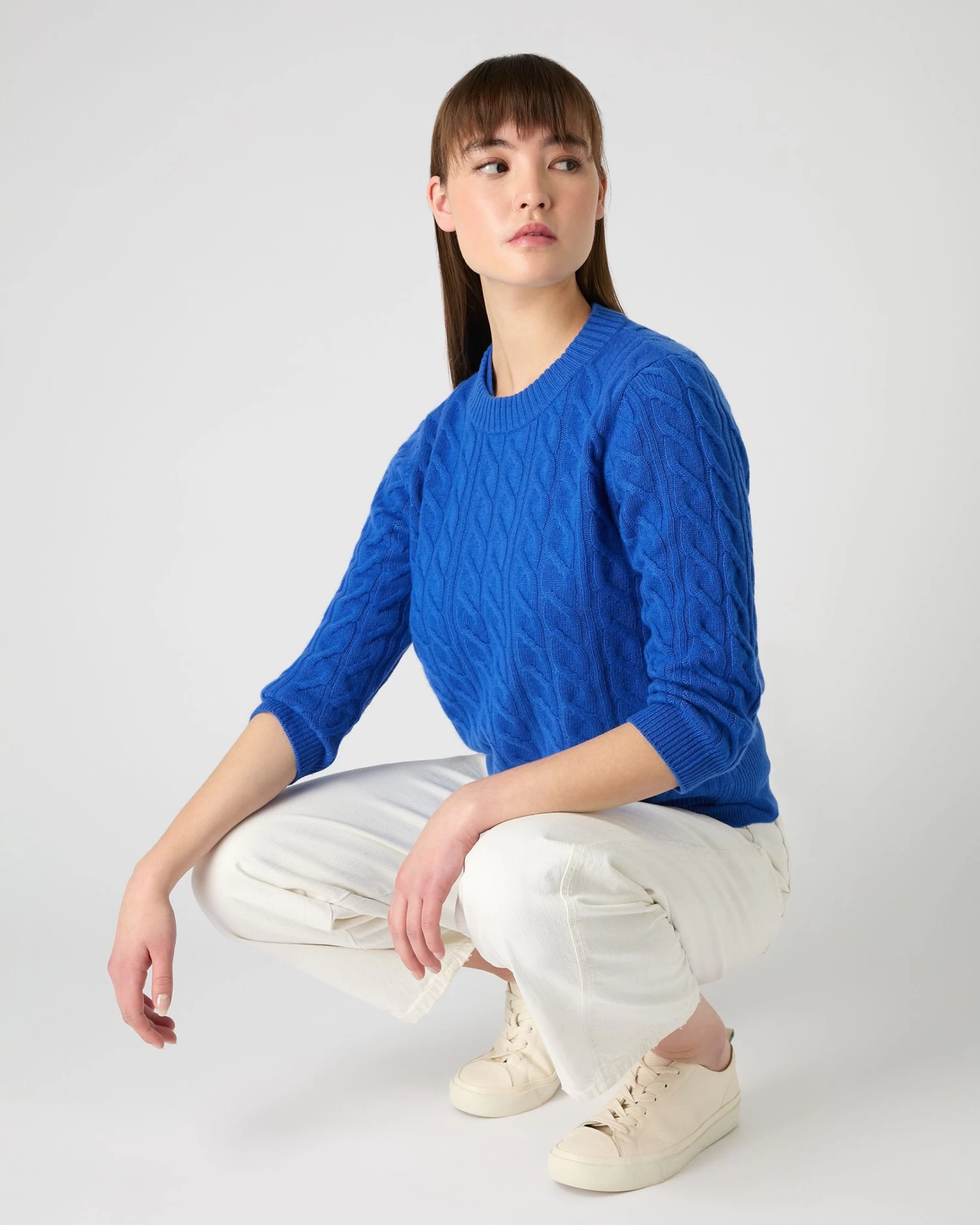 Women’s Emilia Cable Round Neck Cashmere Jumper Sonic Blue