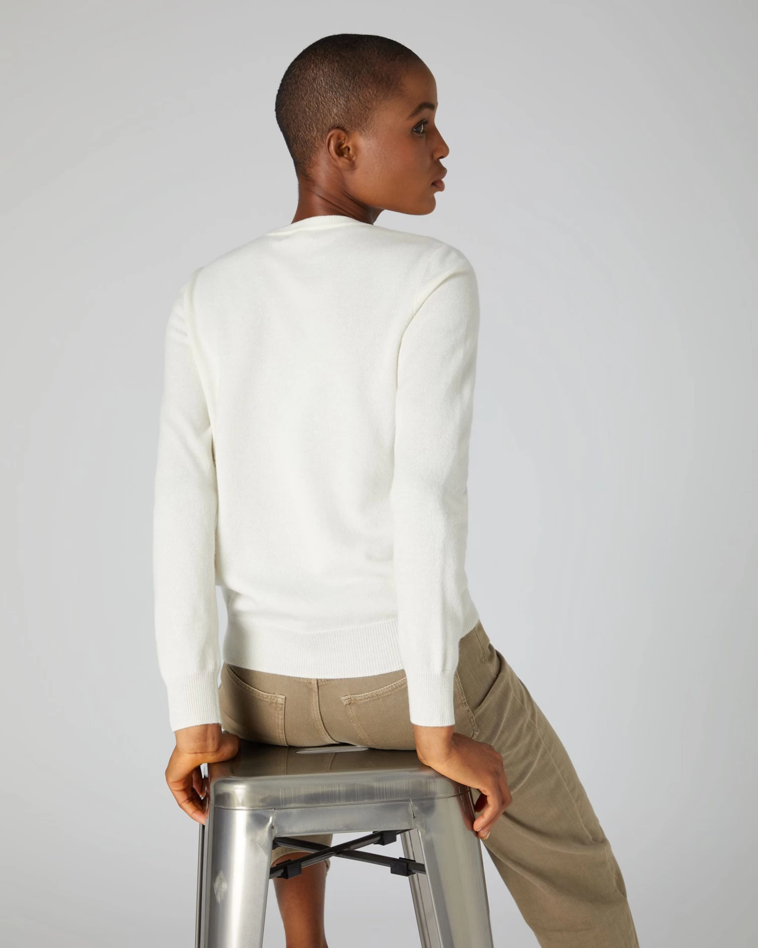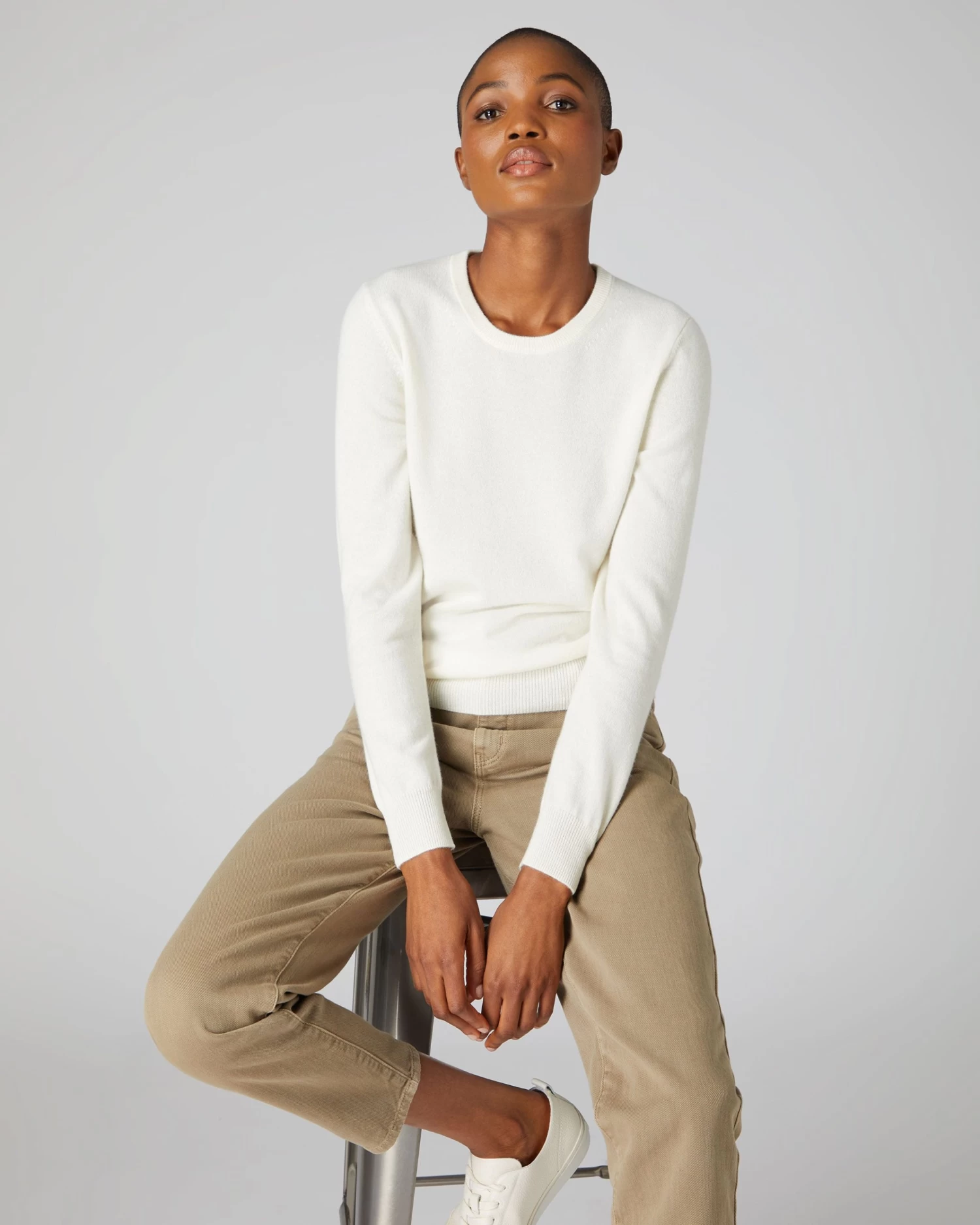 Women’s Evie Classic Round Neck Cashmere Jumper New Ivory White