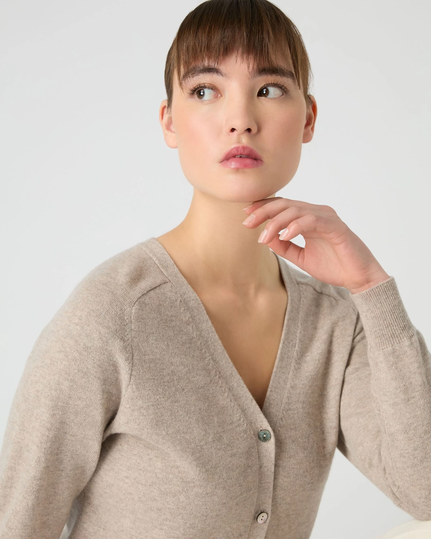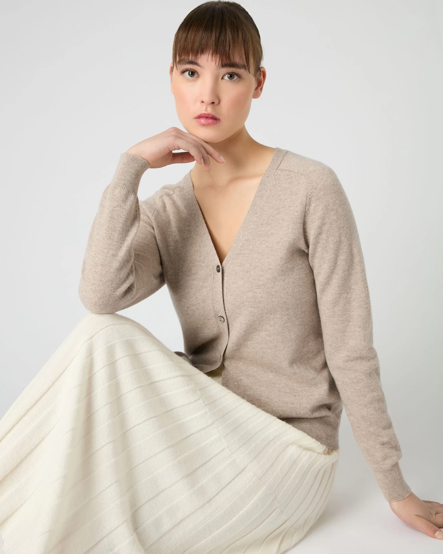 Women’s Lara V Neck Cashmere Cardigan Oatmeal Brown