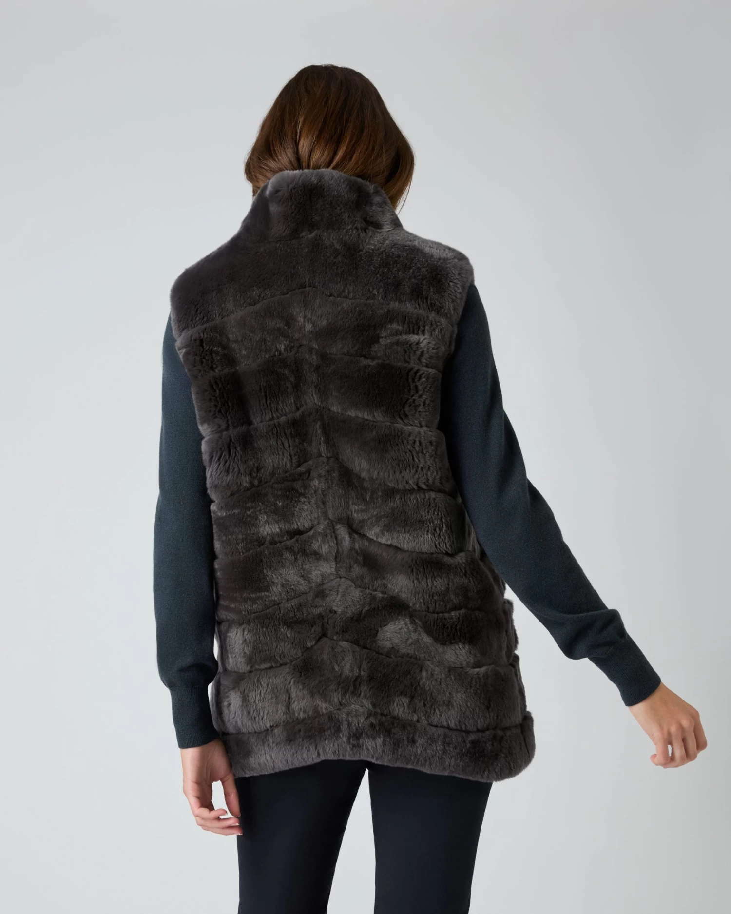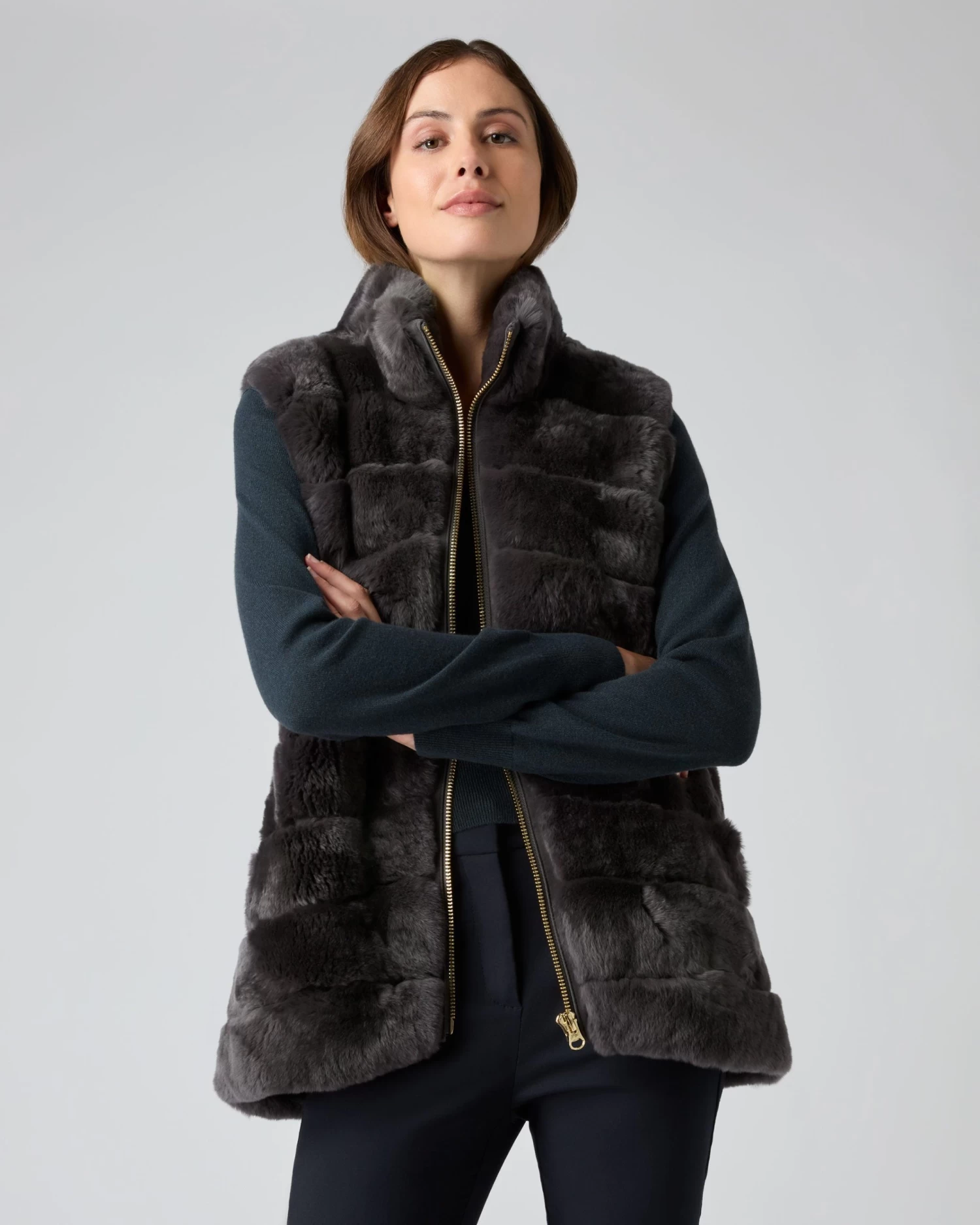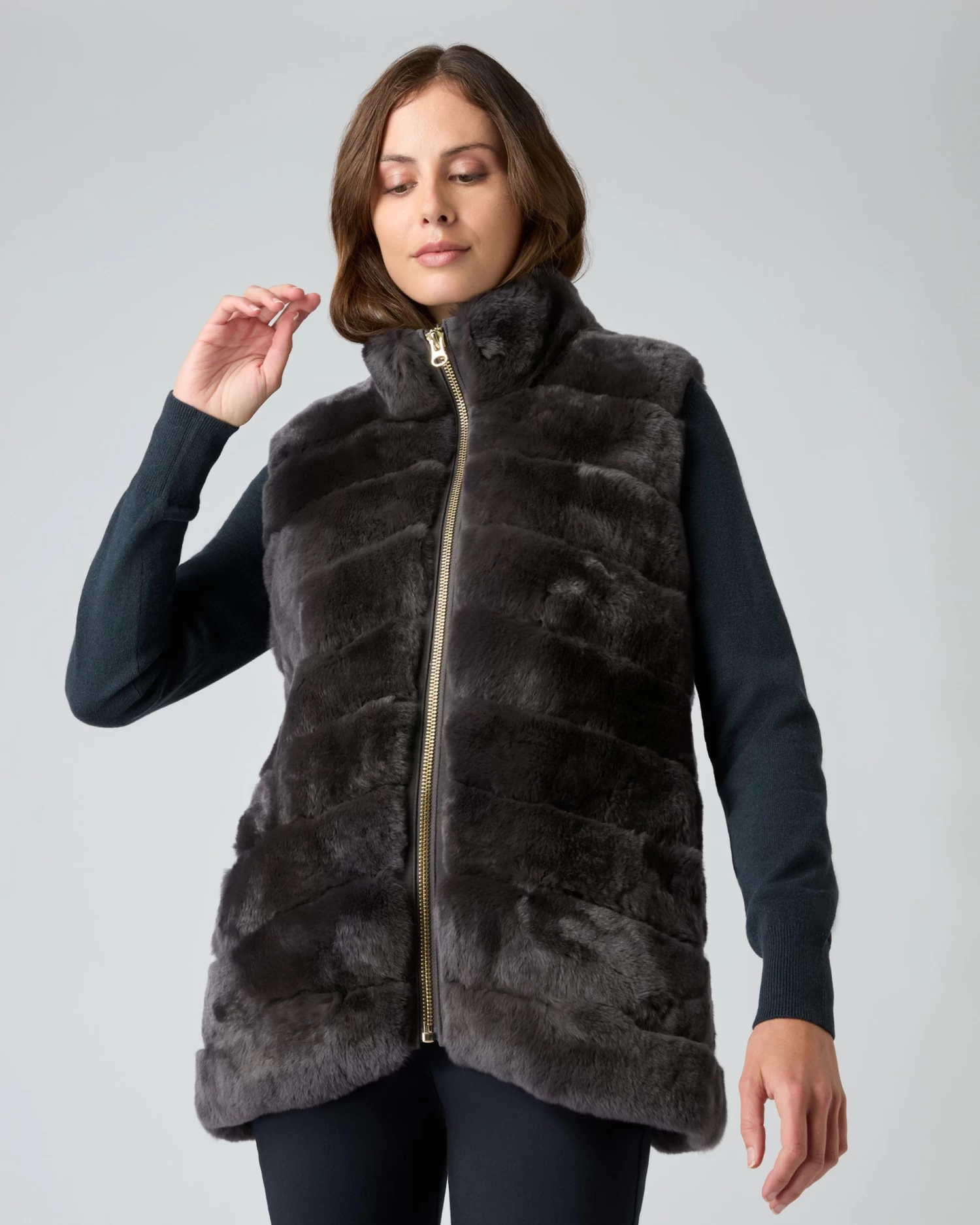 Beautifully ribbed cut Rex fur in a stylish gilet.