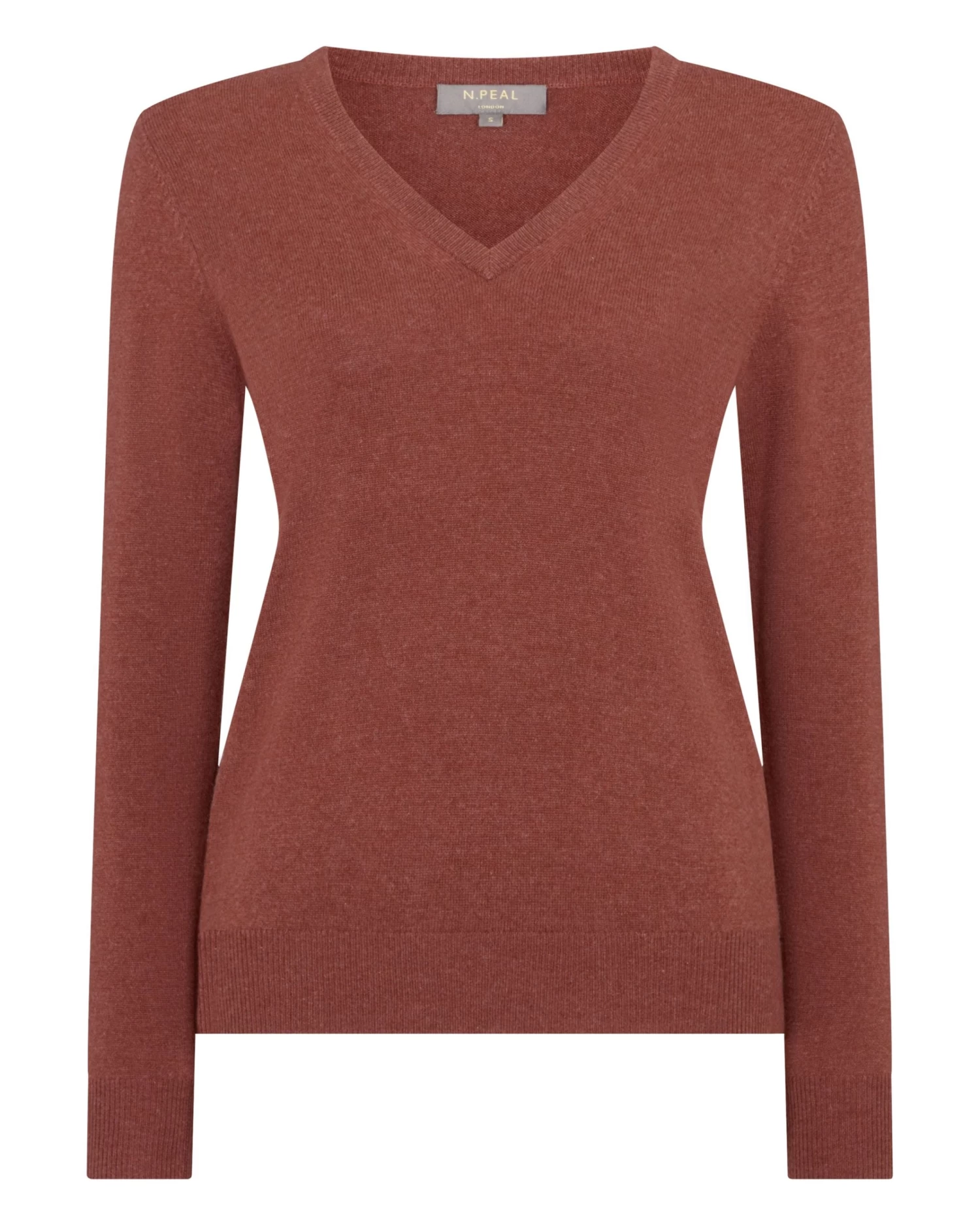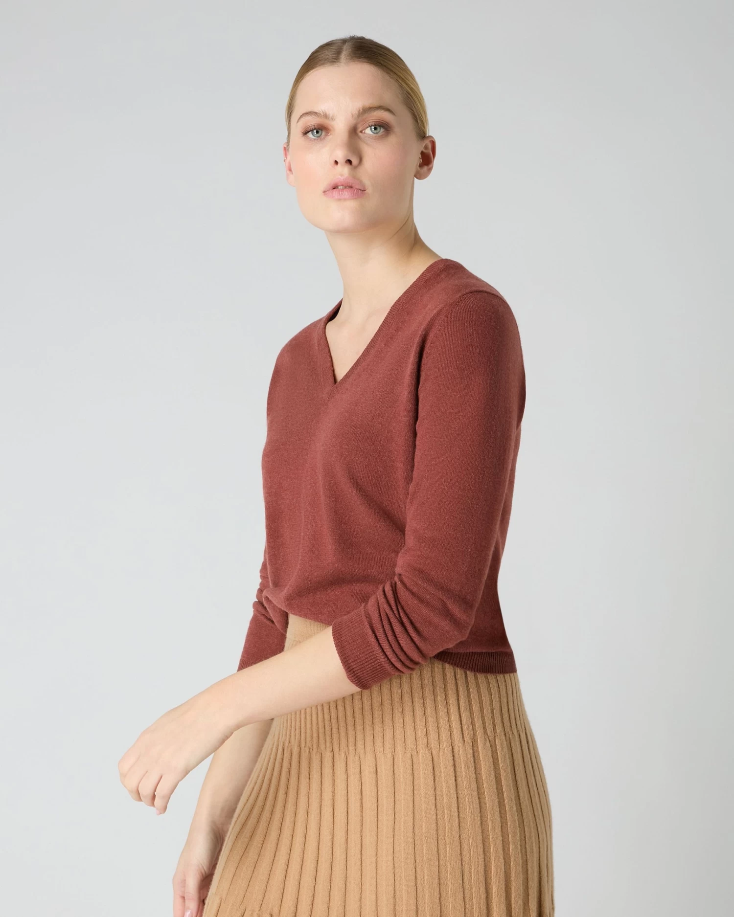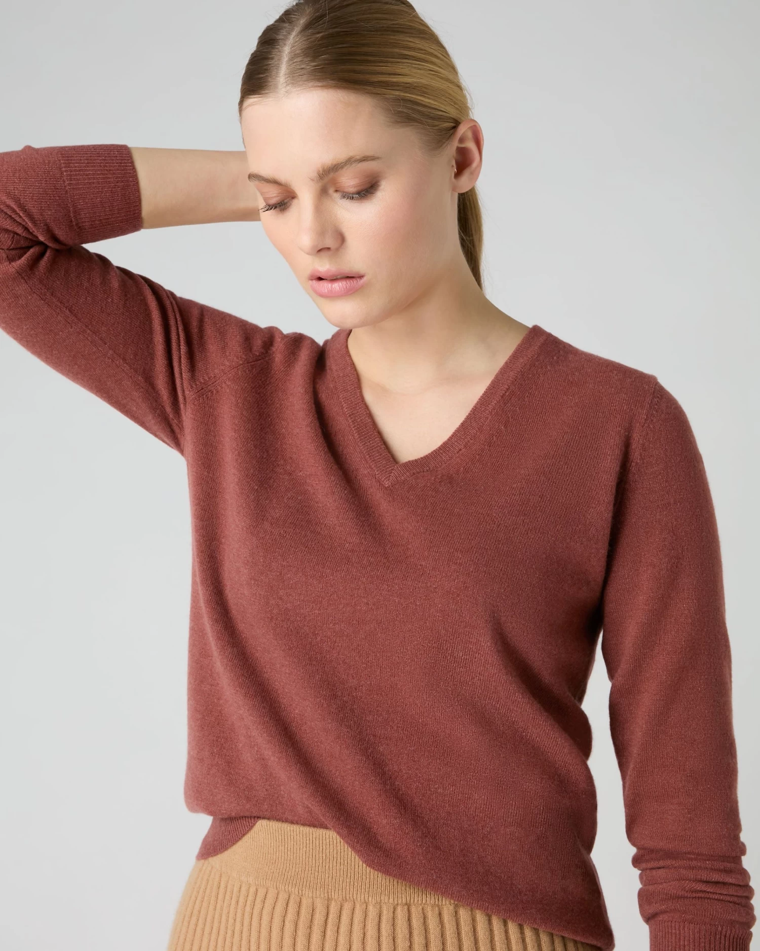 Women’s Phoebe V Neck Cashmere Jumper Terracotta Brown