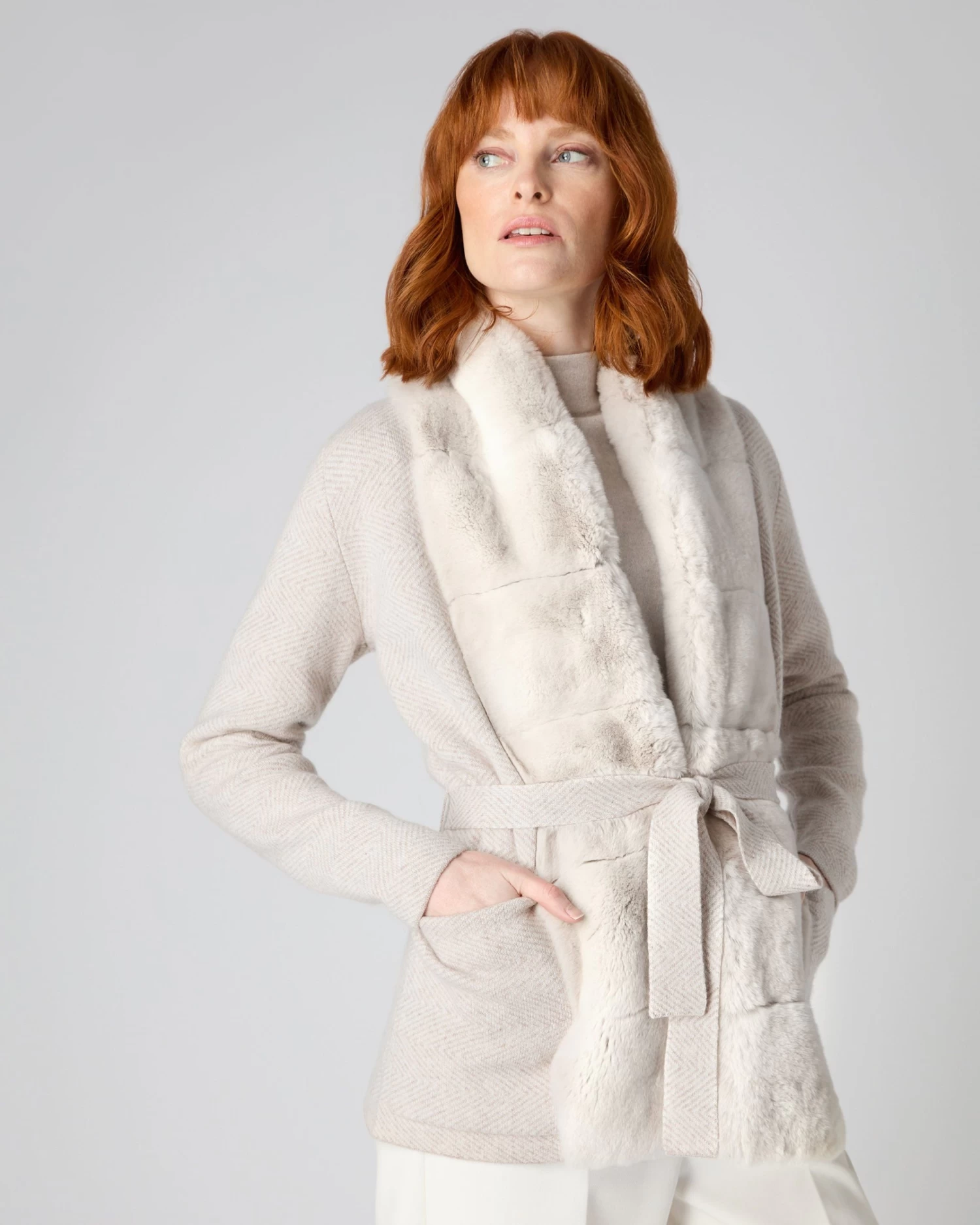 A beautiful new jacket for this season combining gorgeous cashmere and rex fur trim.