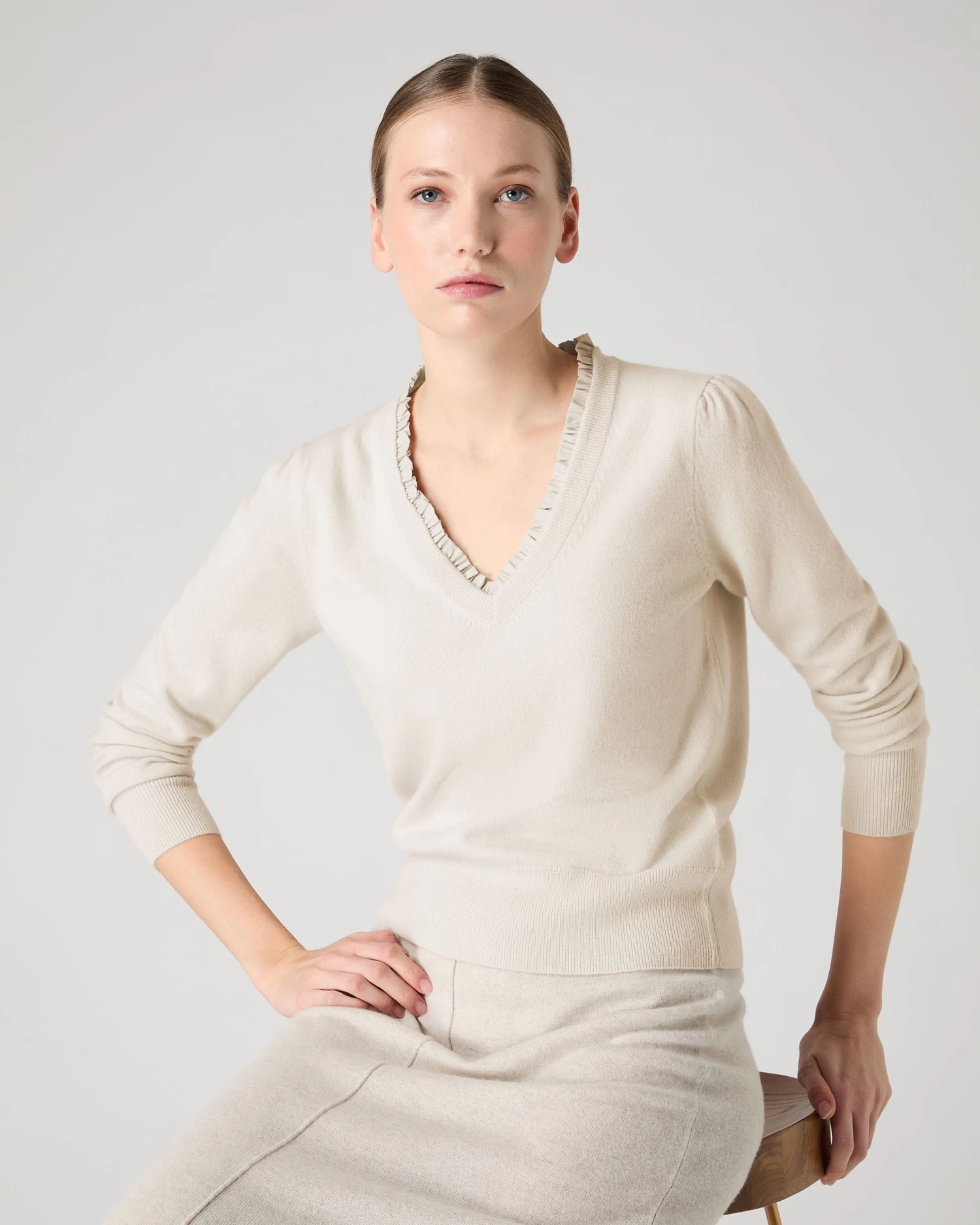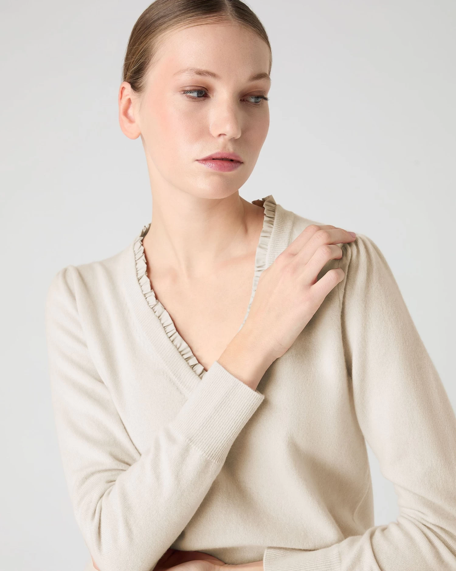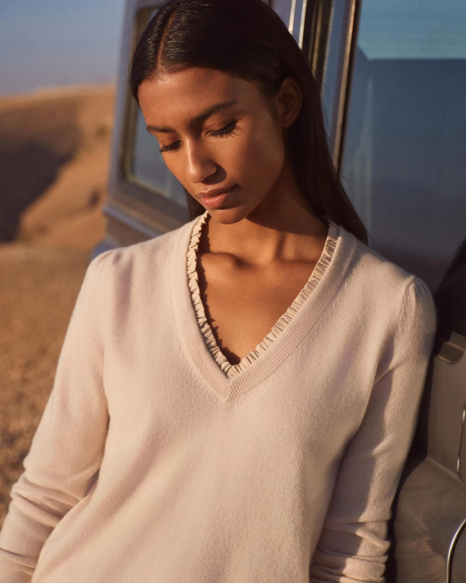 A gorgeous new take on a classic V – enhanced by our popular ruffle trim.