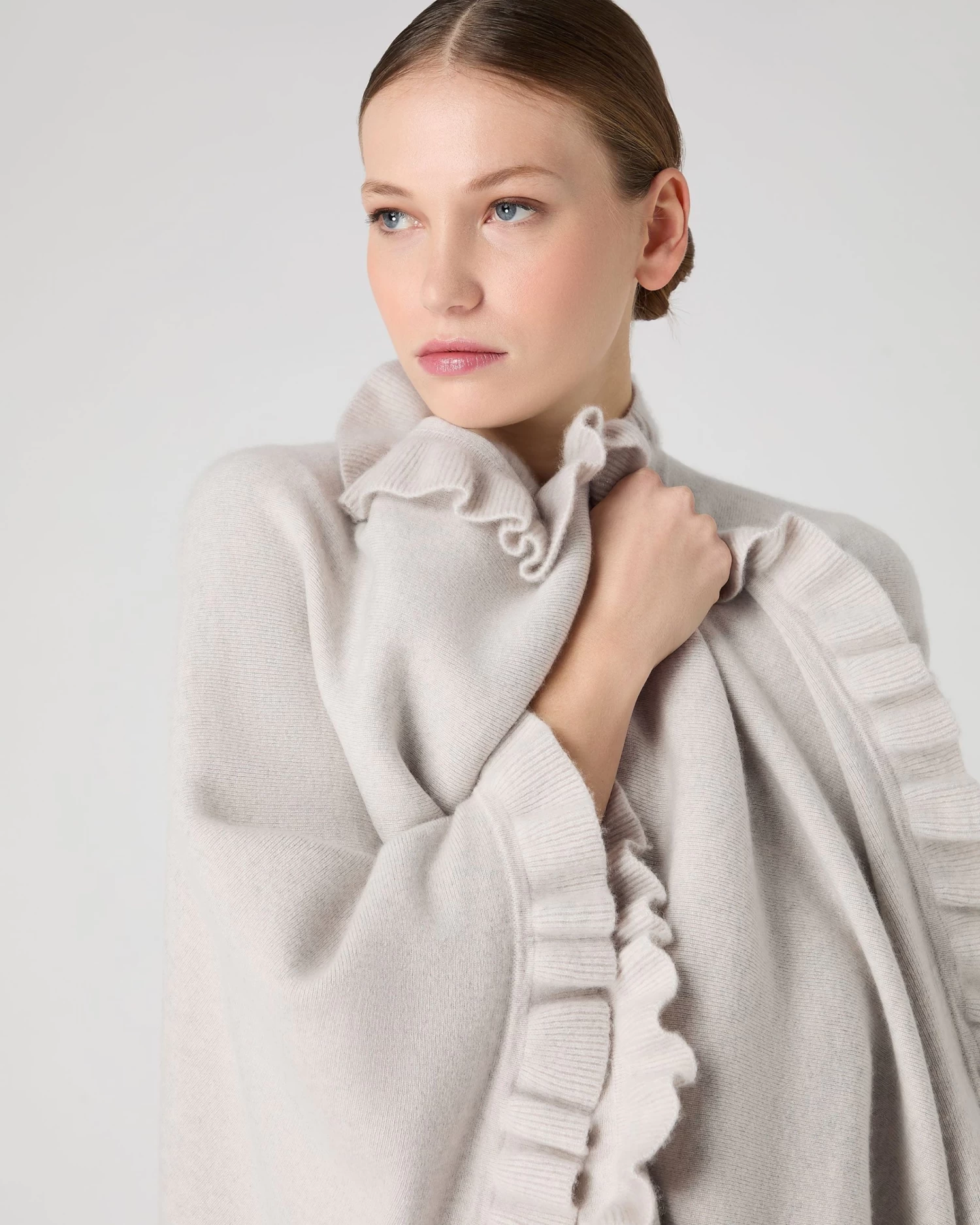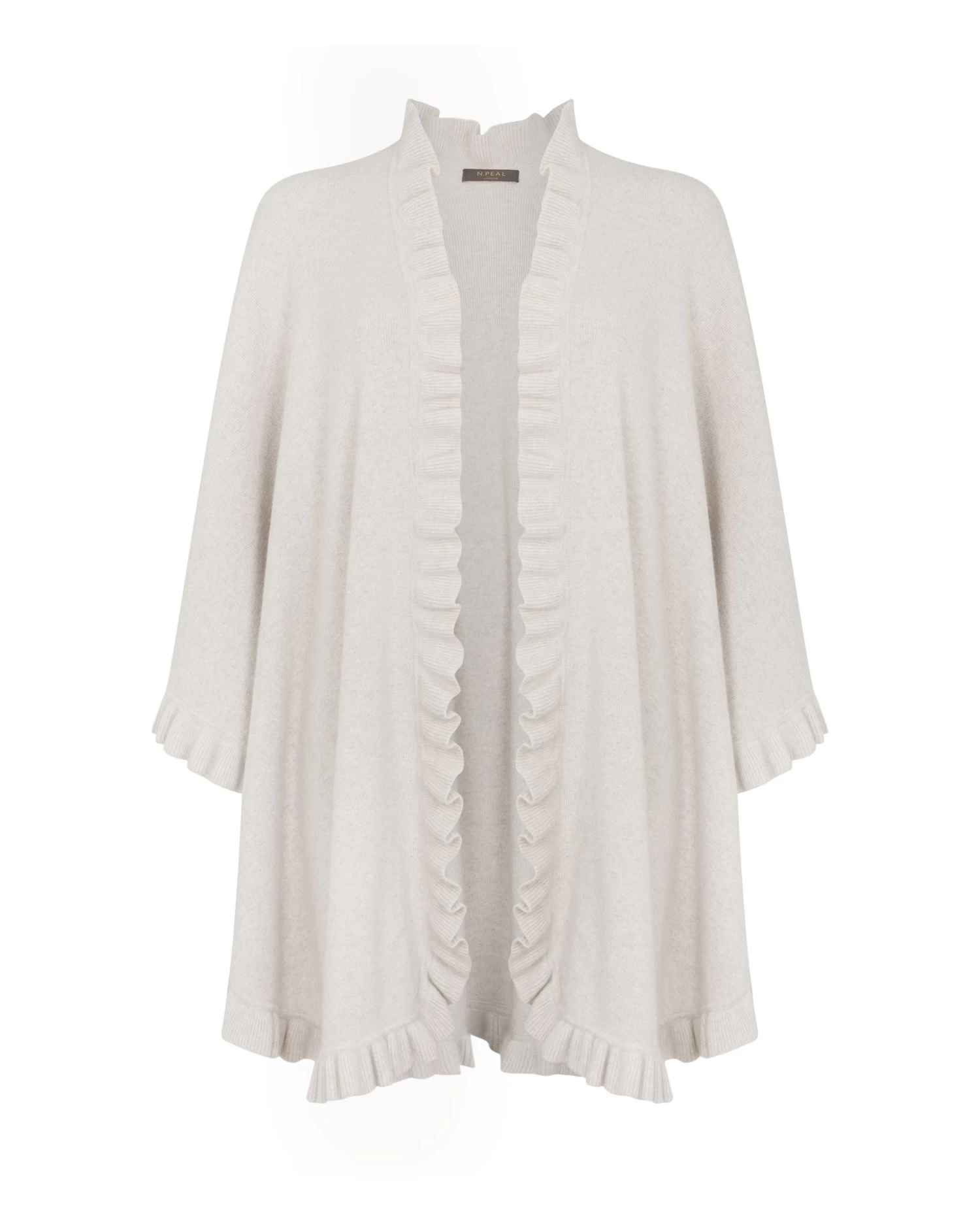 A traditional and fabulous cashmere cape with a frill edge.